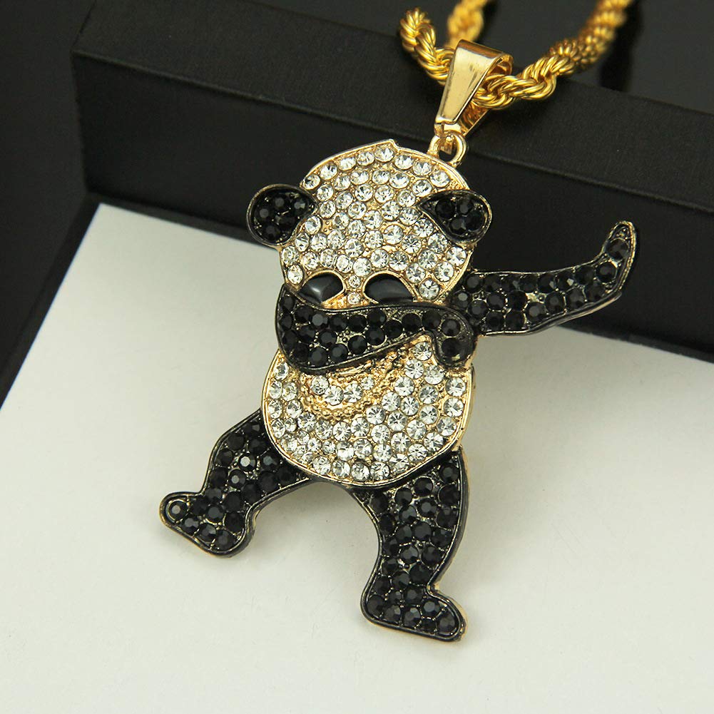 このネックレス、ただの可愛いアクセサリーじゃありません。存在感バツグンのパンダがダンス中。しかも全身ラインストーンでデコられているから、光を浴びるたびにキラリと光るゴージャス仕様。