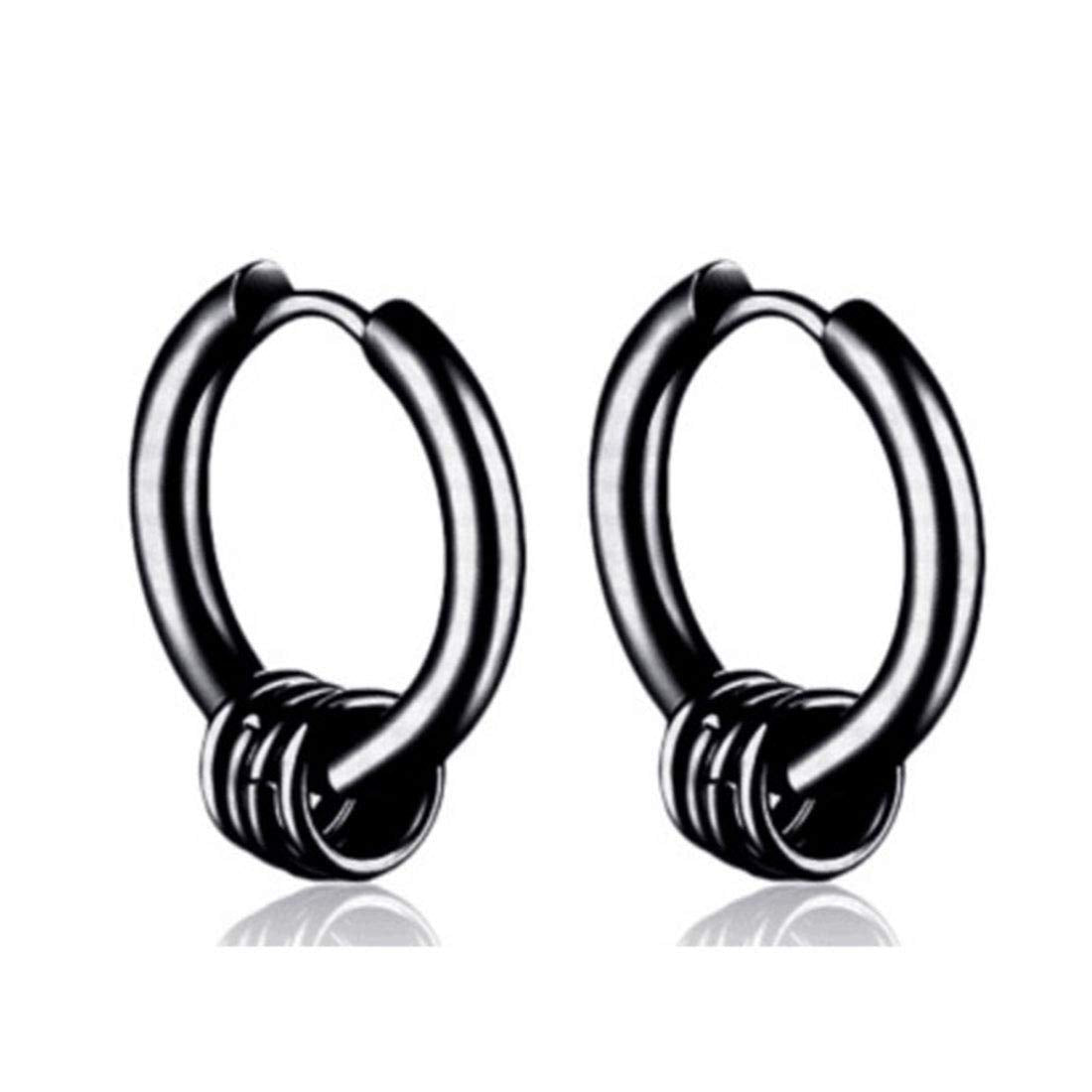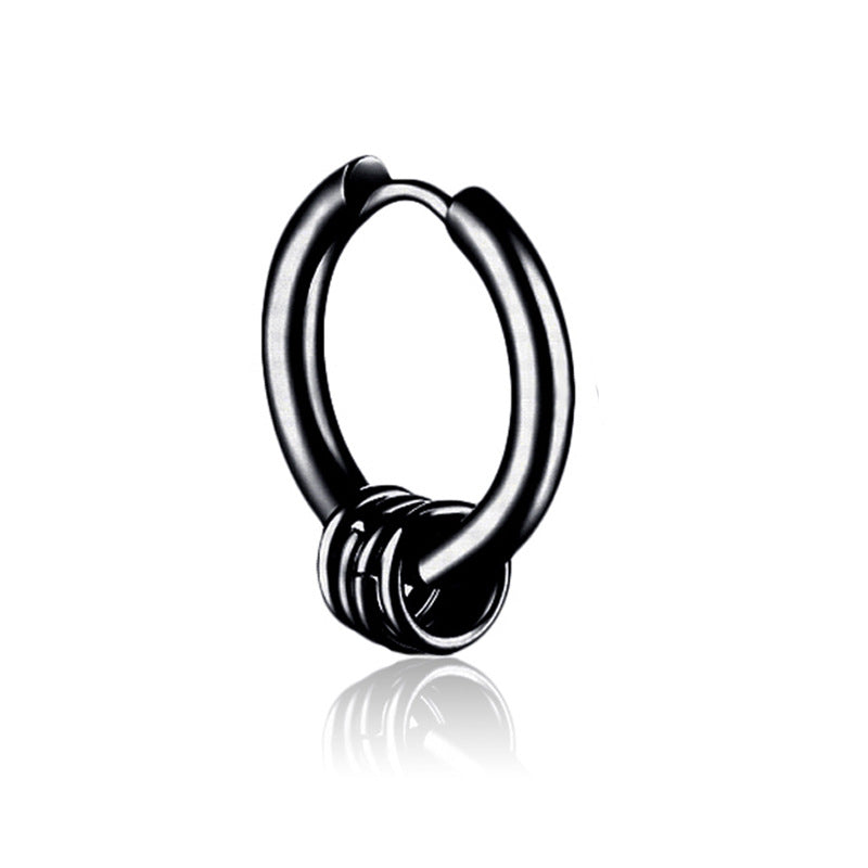 Rockyu フープピアス メンズ – 4連サークルデザイン シルバー&ブラック 両耳セット