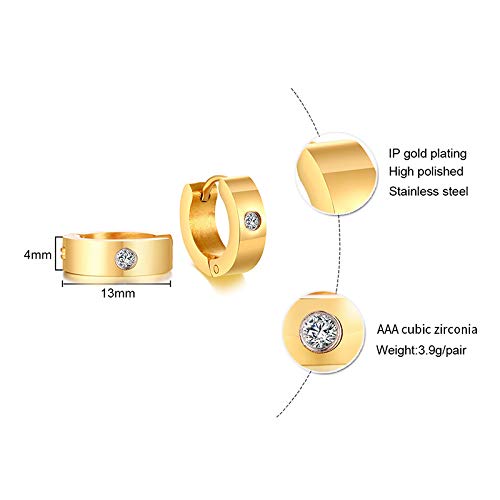 Rockyu サージカルステンレス フープピアス メンズ レディース 幅広 シンプル ジルコニア 金属アレルギー対応