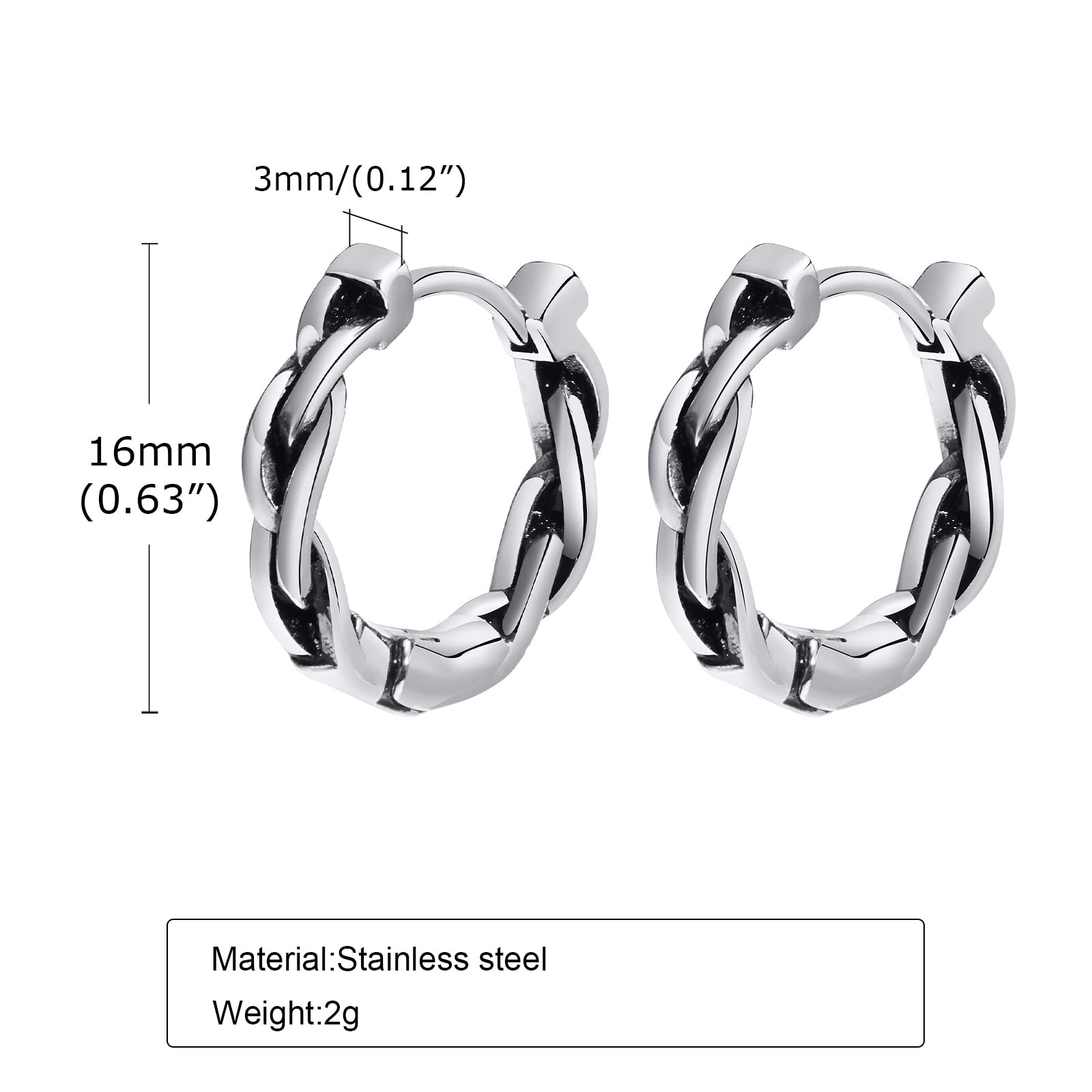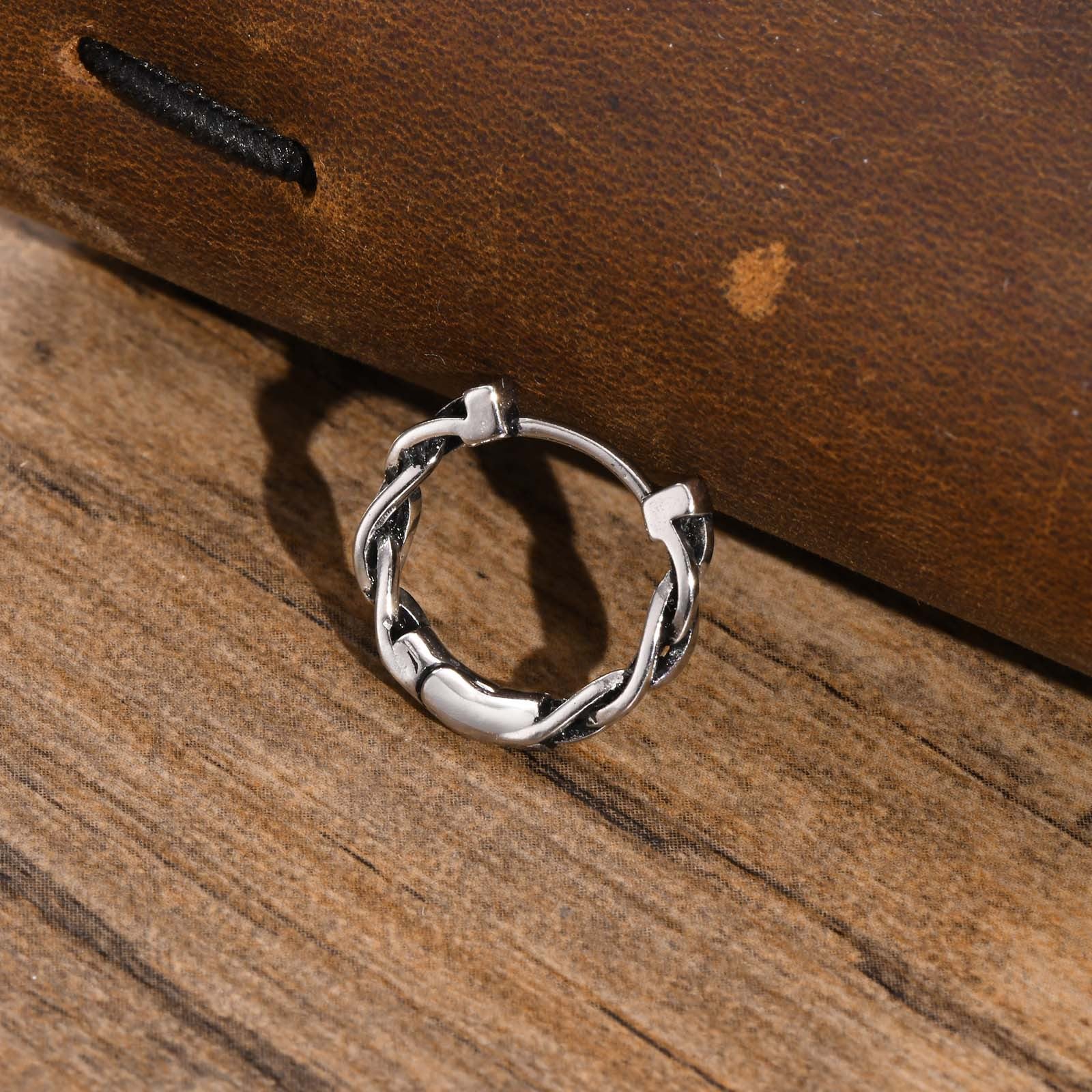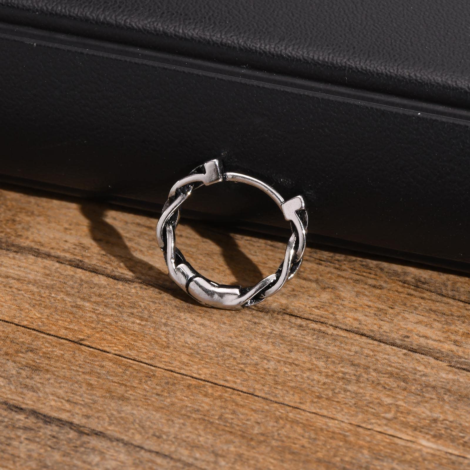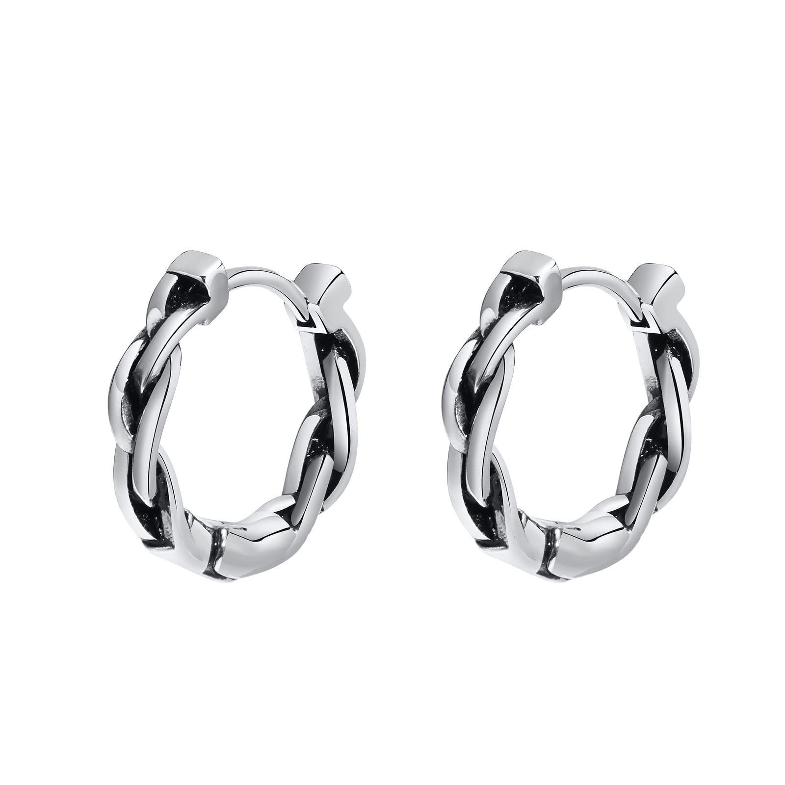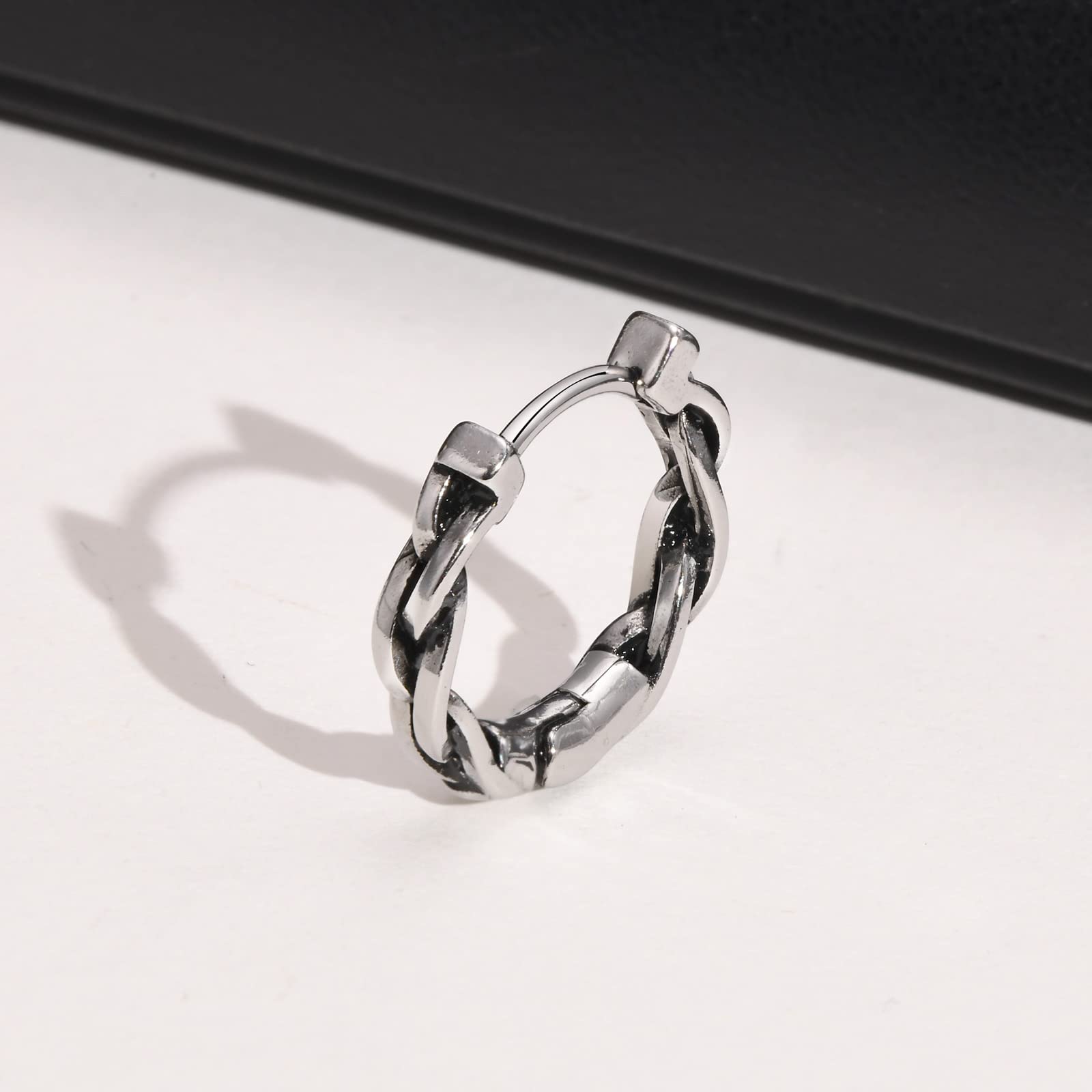 Rockyu メンズ ピアス シルバー ツイストデザイン フープピアス ステンレス鋼 金属アレルギー対応