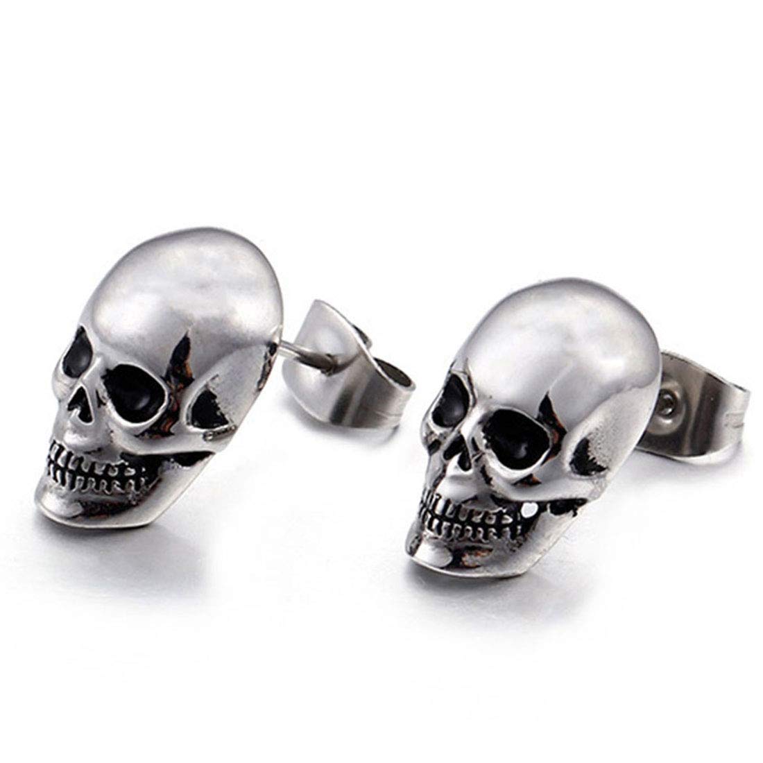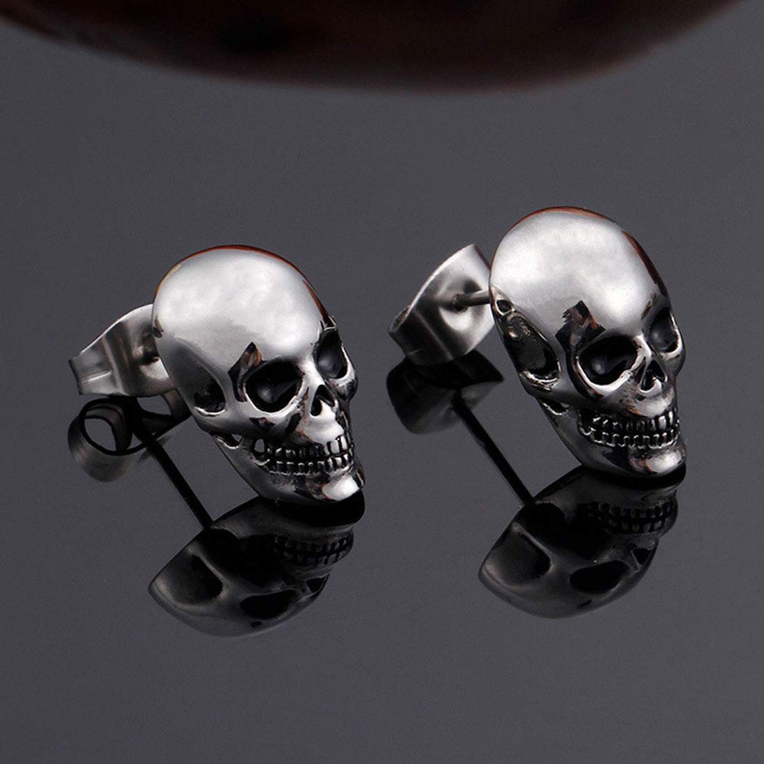 Rockyu ピアス メンズ スカル シルバー チタン合金 両耳セット