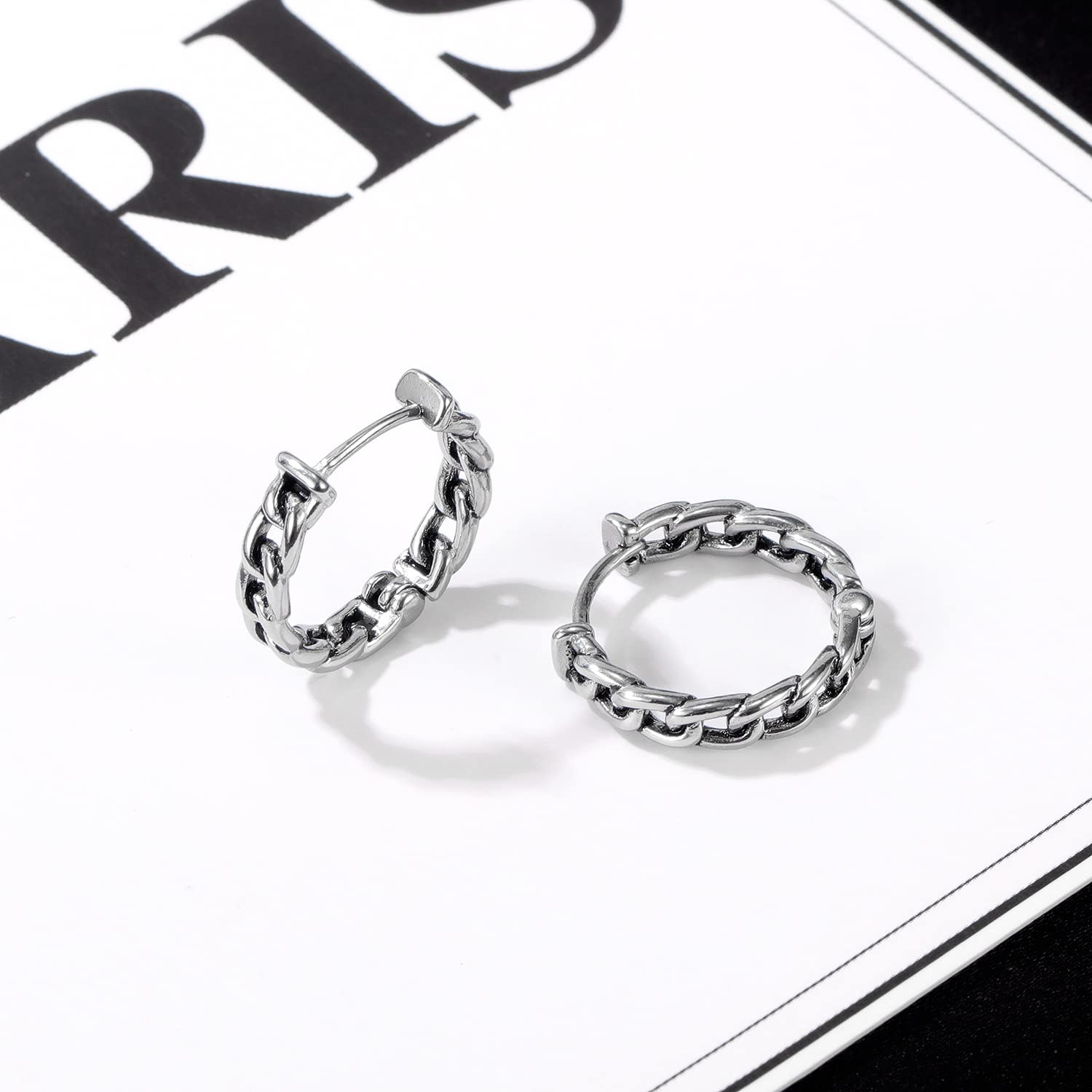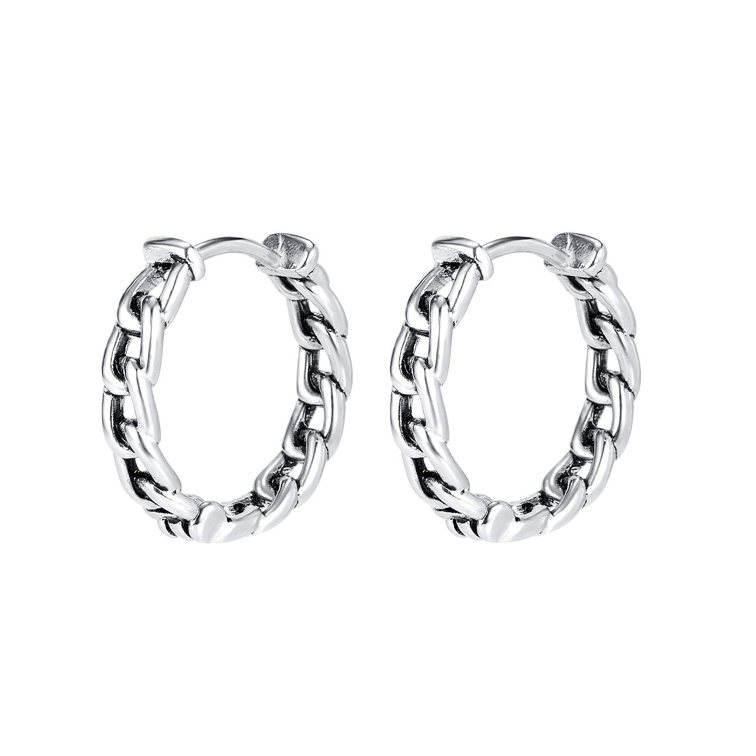 Rockyu 喜平チェーンフープピアス メンズ|シルバー×中折れ式・金属アレルギー対応