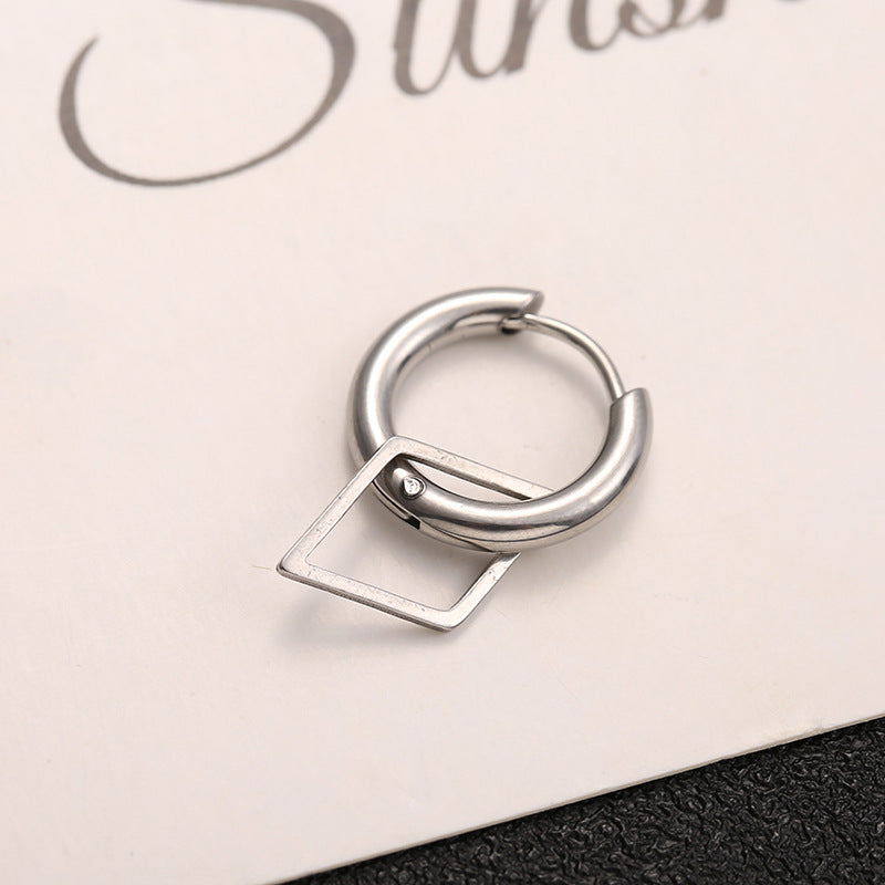 Rockyu ピアス メンズ シルバー 幾何学 四角形 フープ チタン製 金属アレルギー対応