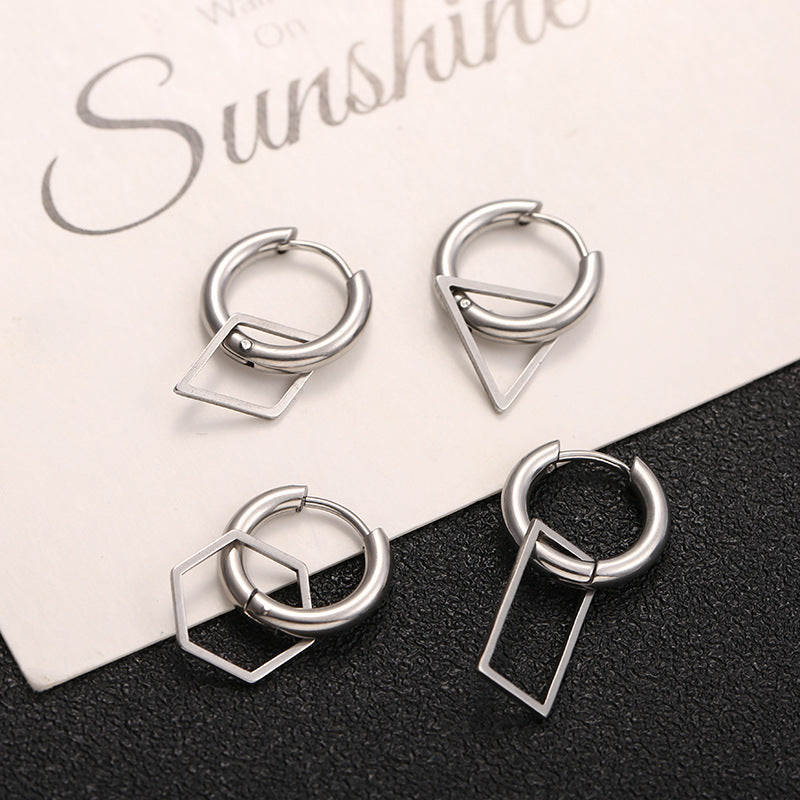 シンプルだけど個性が光る──Rockyu から登場したメンズシルバーピアスは、幾何学モチーフを取り入れたユニークなデザインが魅力。四角形、三角形、六角形などのクールなフォルムが、耳元にさりげないアクセントを加え、どんなスタイルにも合わせやすい万能アイテムです。