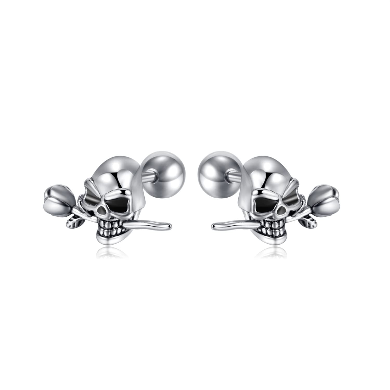 Rockyu メンズ ピアス シルバー スカルデザイン チタン製 両耳用 ファッションジュエリー
