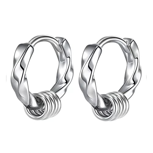 Rockyu ツイストフープピアス メンズ レディース兼用 ステンレス製 金属アレルギー対応 黒&シルバー