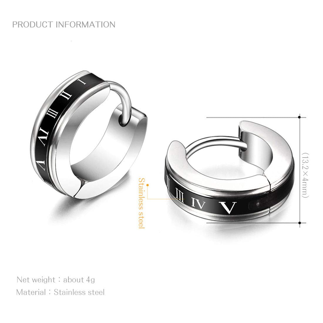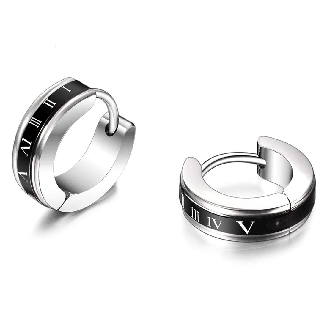 Rockyu メンズフープピアス – ステンレス製 ローマ数字&ギリシャ風刻印 両耳セット
