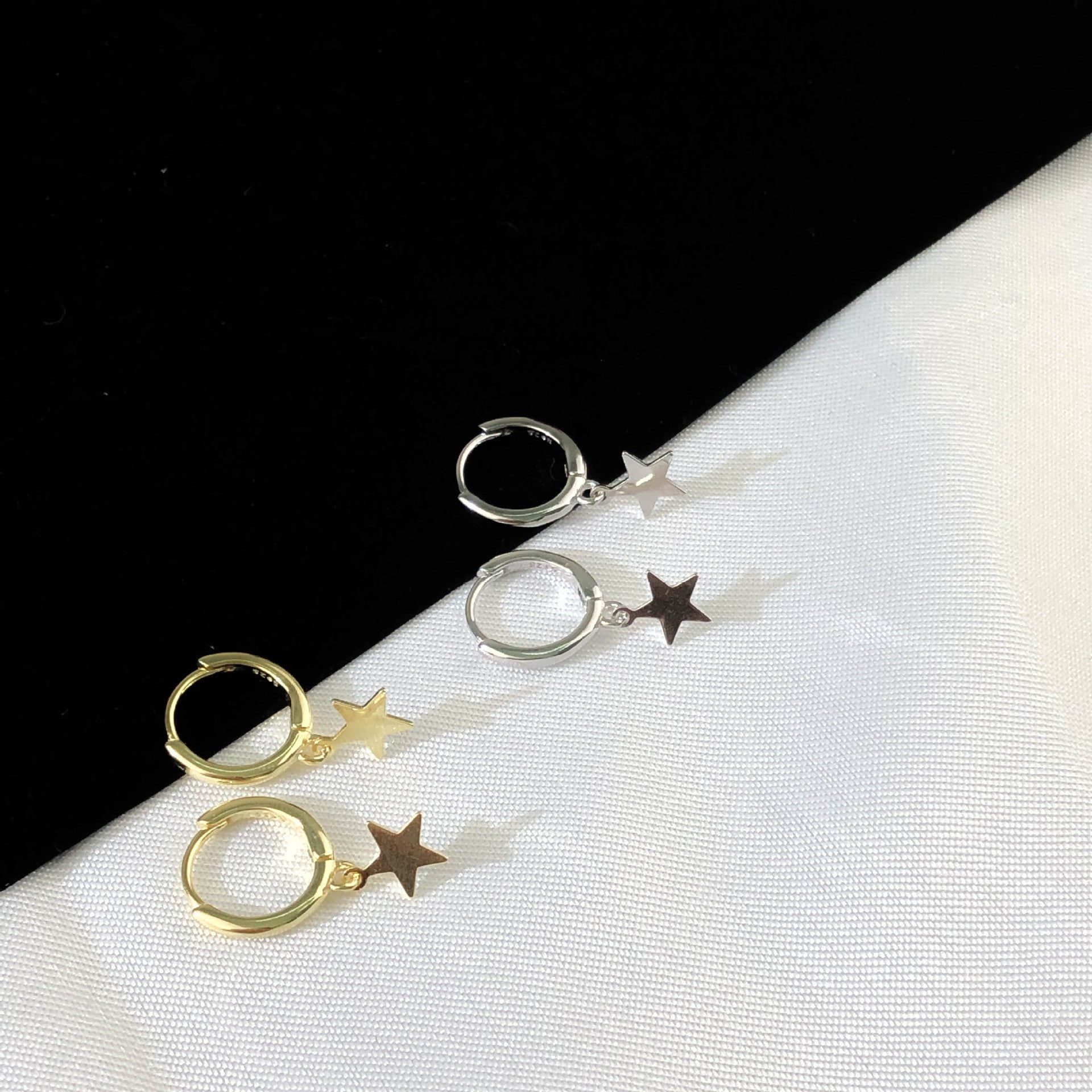 Rockyu 星モチーフ フープピアス レディース メンズ兼用 925純銀 ゆれるスターリング