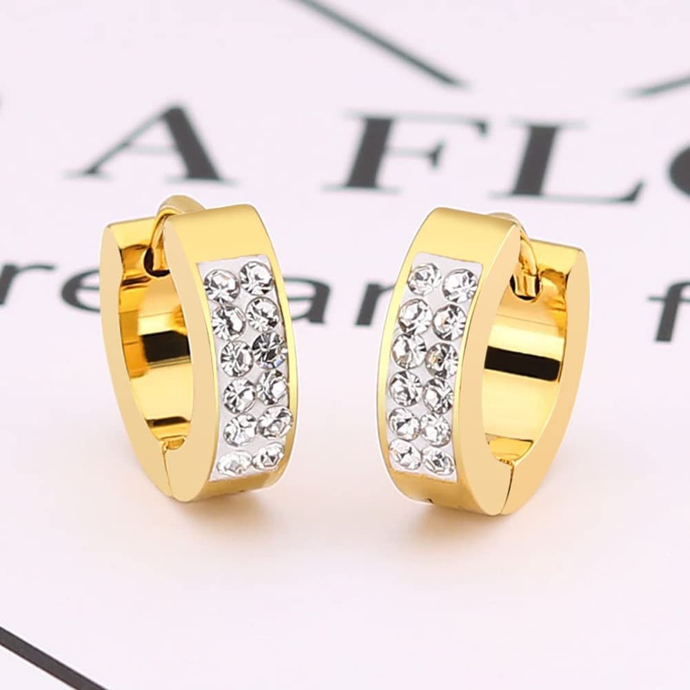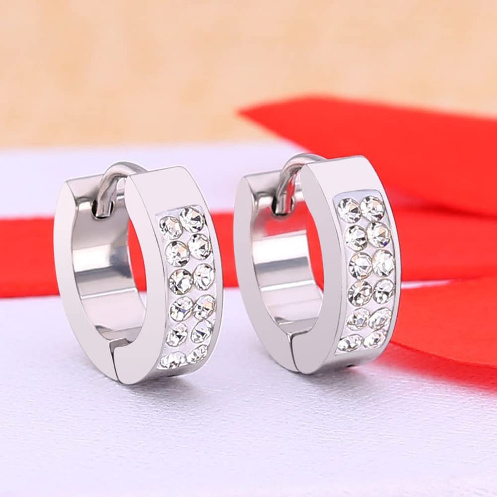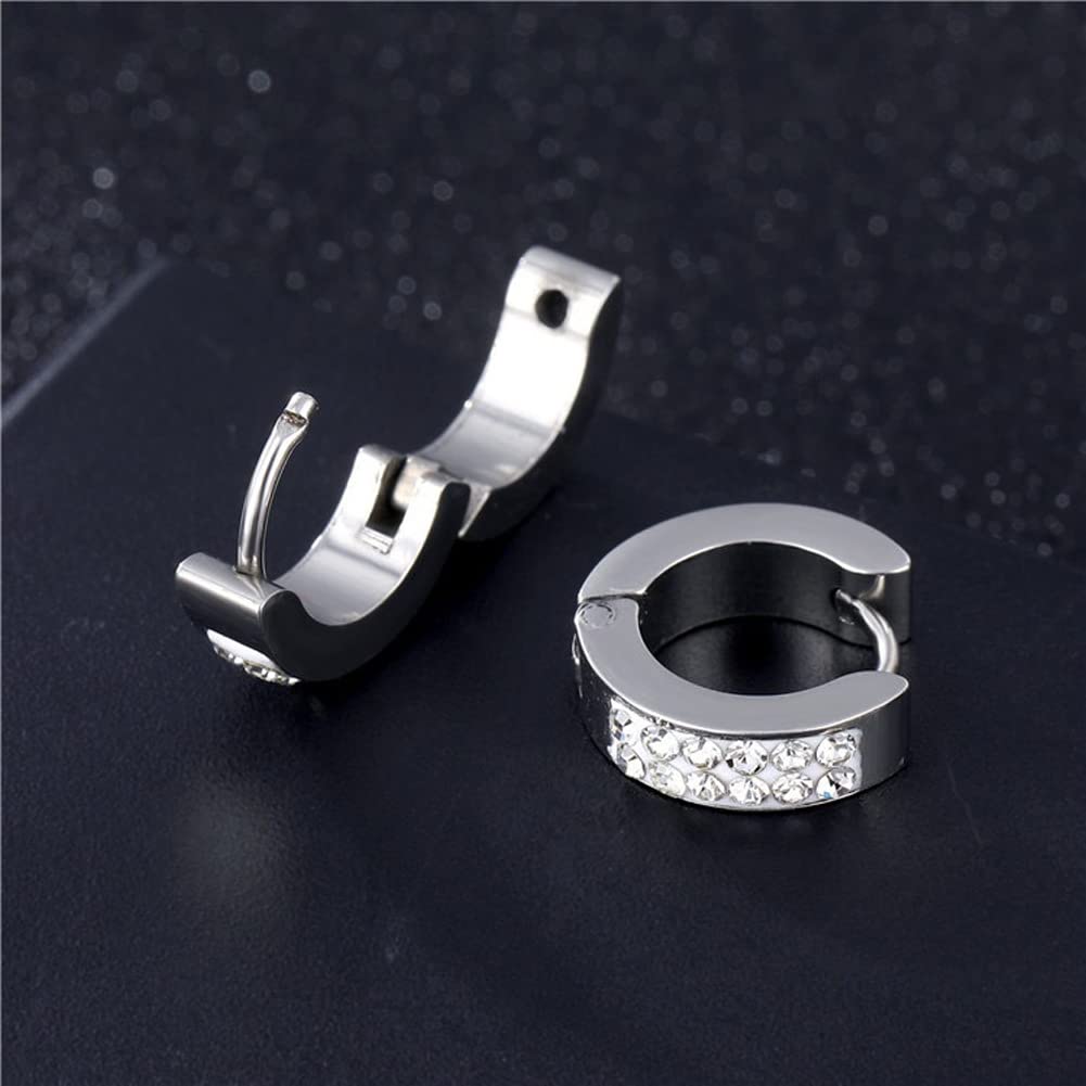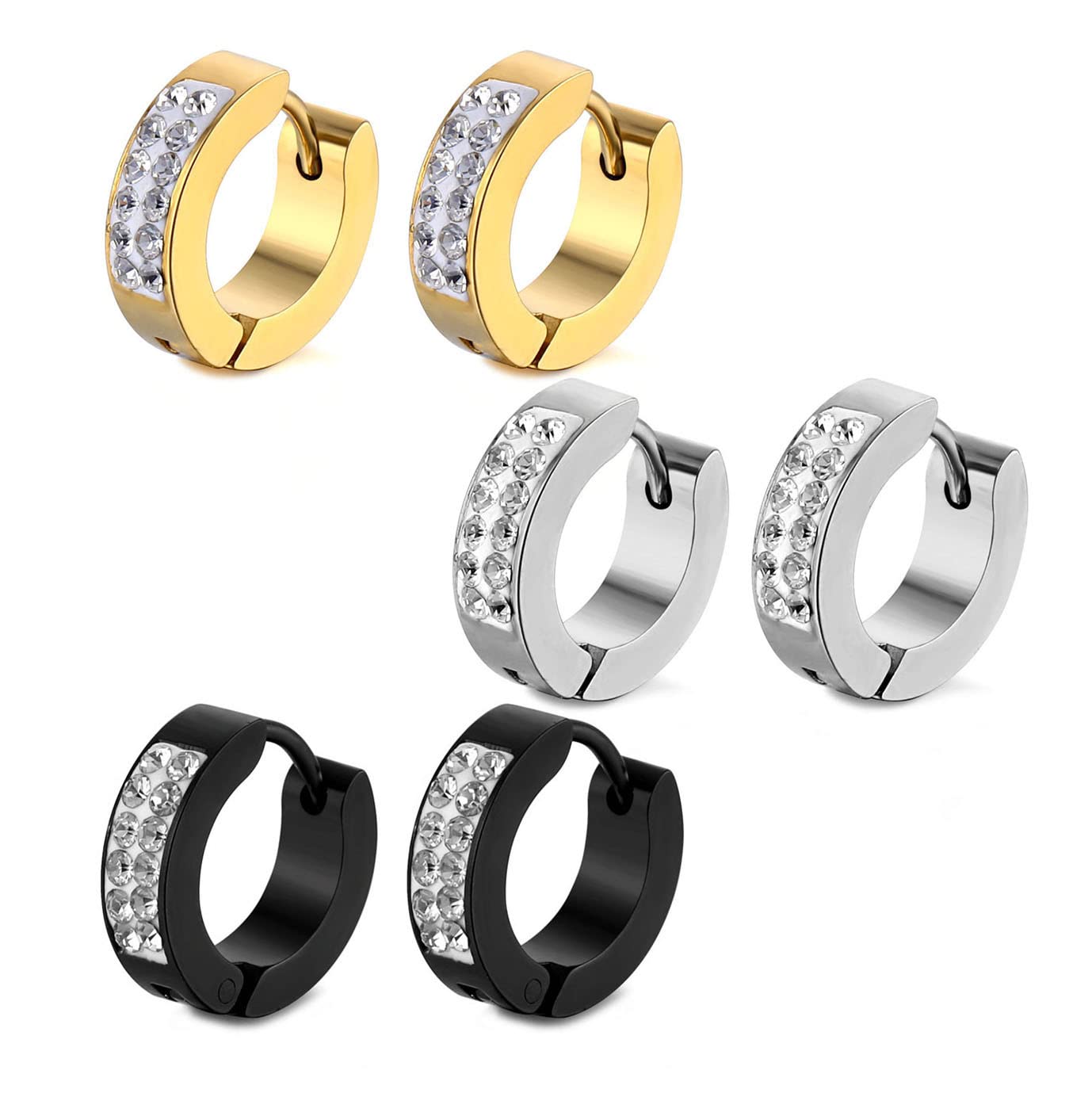 Rockyu メンズ3色リングピアス 多粒ジルコニア チタン製 アレルギー対応 輝きを放つ耳元アクセサリー