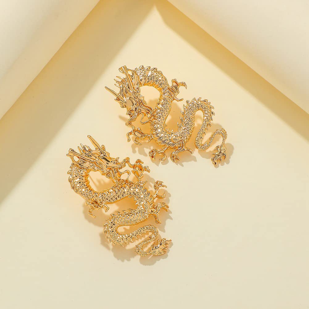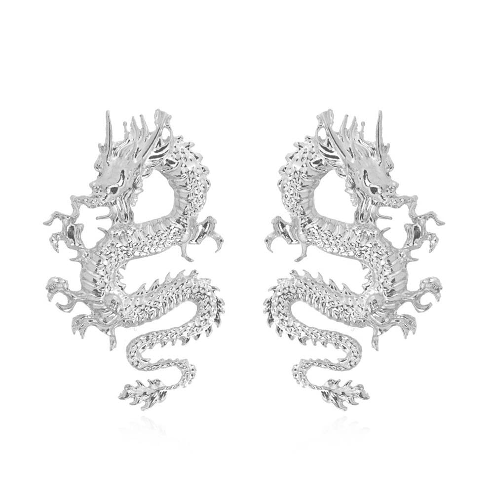 Rockyu ピアス メンズ レディース ドラゴン 龍 シルバー ゴールド 中華風 ビッグサイズ アクセサリー