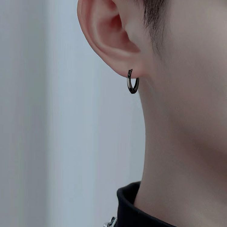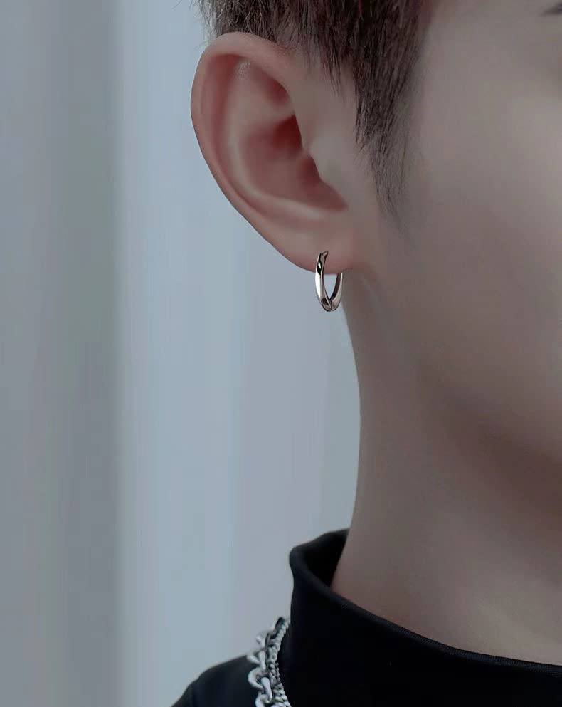 Rockyu ピアス メンズ シルバー925 フープピアス モビウスデザイン ツイスト加工 小さめ シンプル おしゃれ