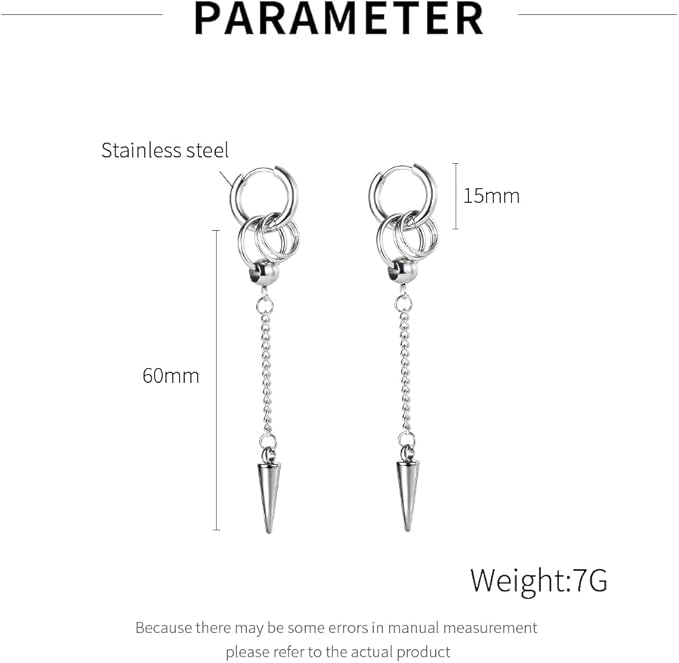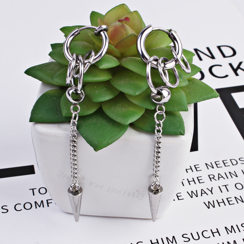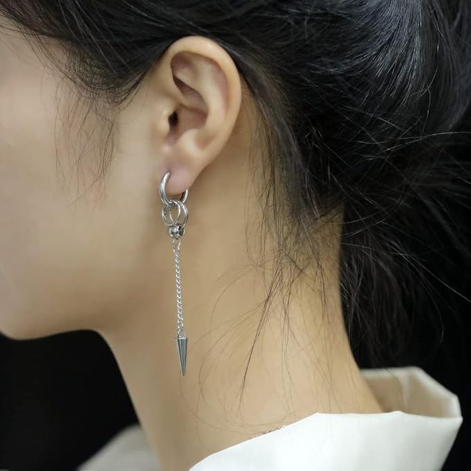 クールさは耳元から始まる。Rockyuのステンレス製スパイクチェーンピアスは、無駄を削ぎ落としたミニマルデザインの中に、しっかりと主張するスパイスを効かせた逸品。