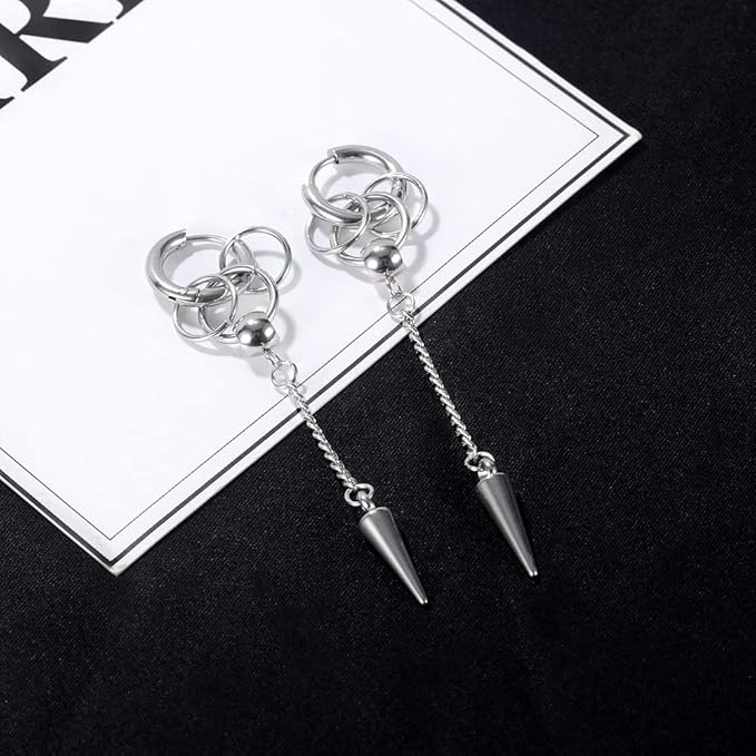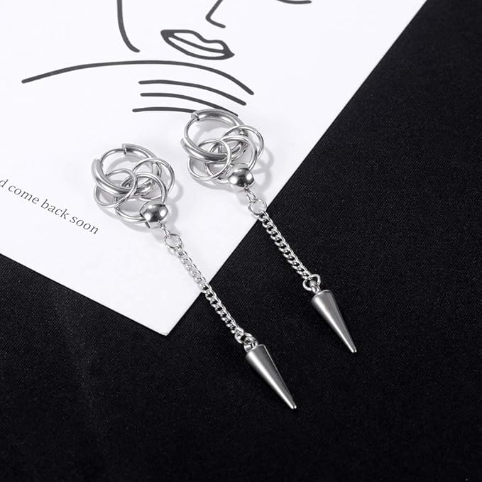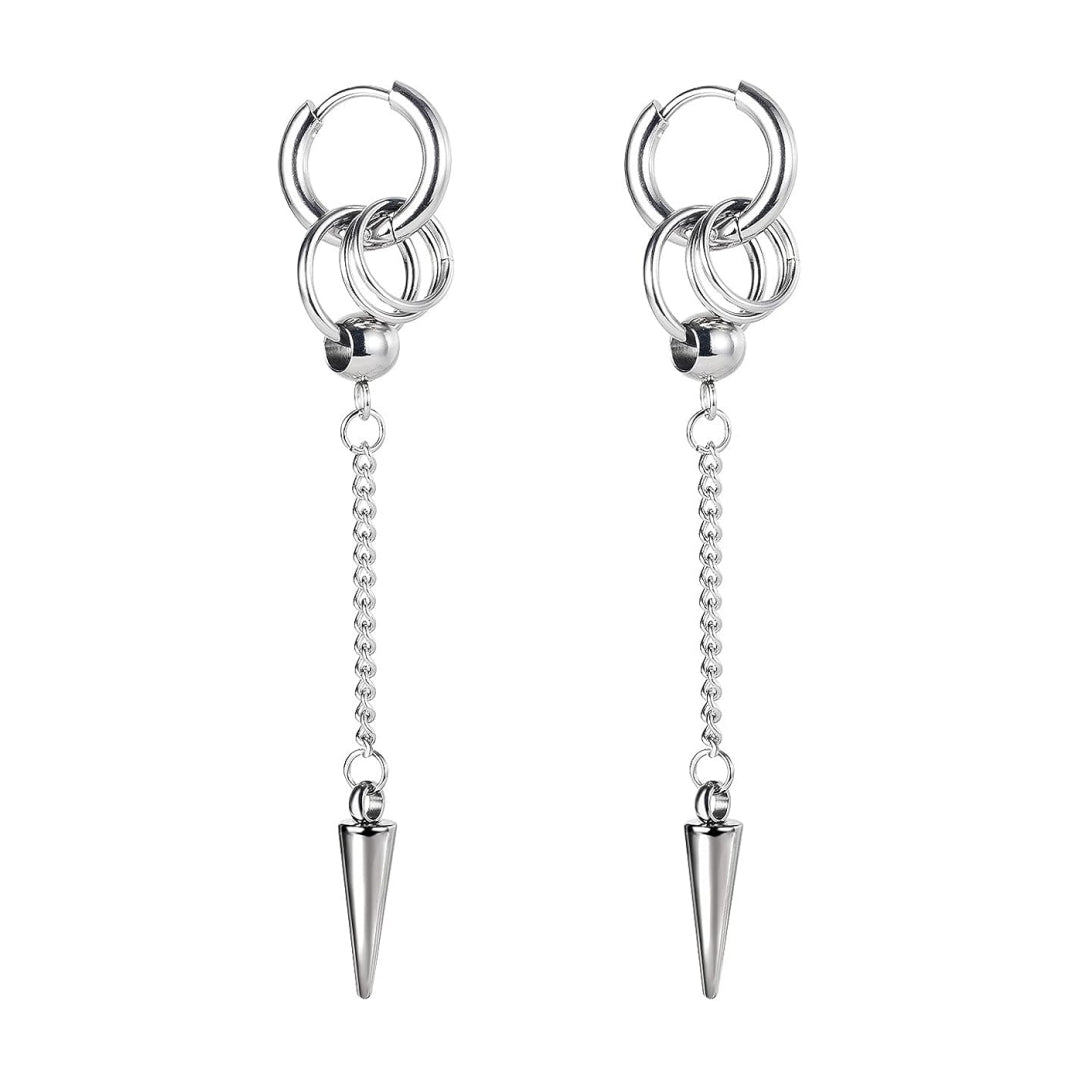 Rockyu チェーンピアス ステンレススチール スパイクフープピアス メンズ レディース兼用