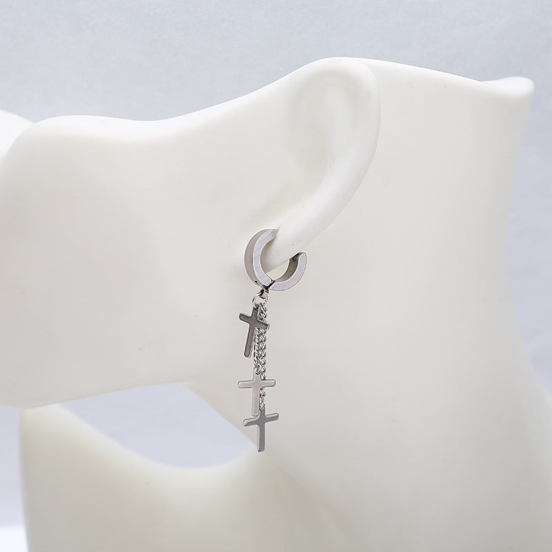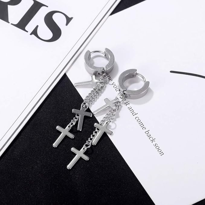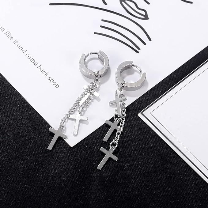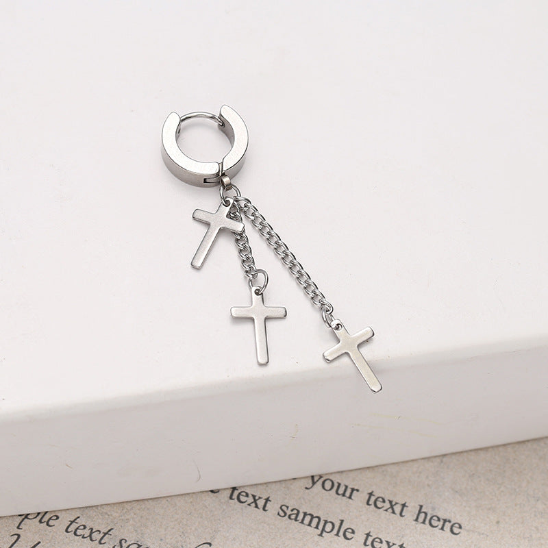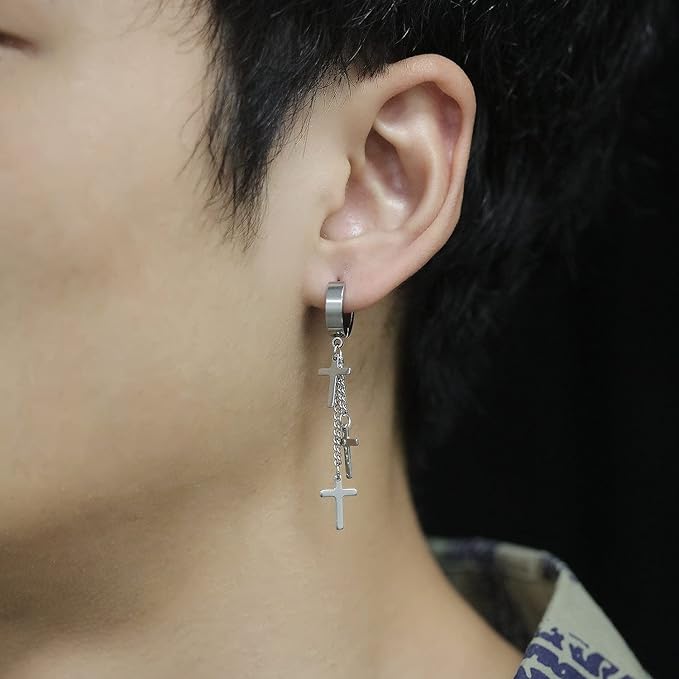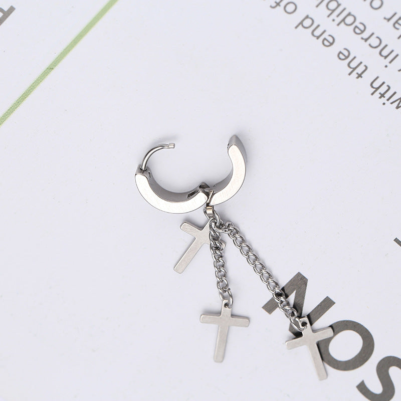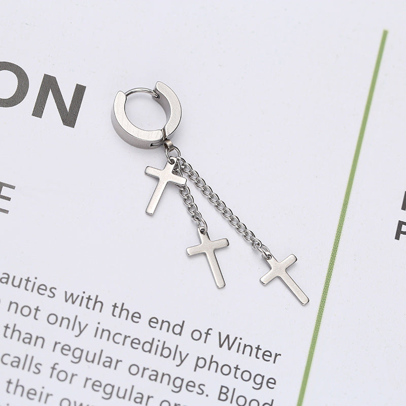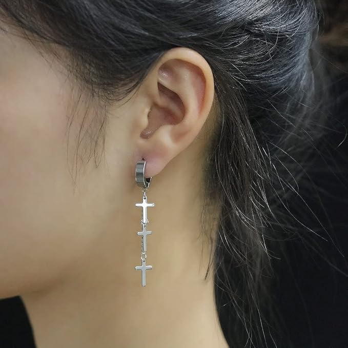 クールで個性的、それがRockyuのクロスチェーンピアス。重なり合う3連の十字架が揺れるたびにセンスが光る、男らしさと繊細さを両立したデザインです。ユニセックスで使えるフープスタイルだから、彼とのシェアやペアコーデにもぴったり。