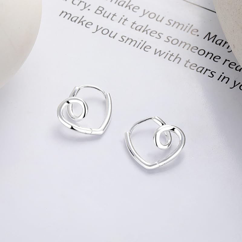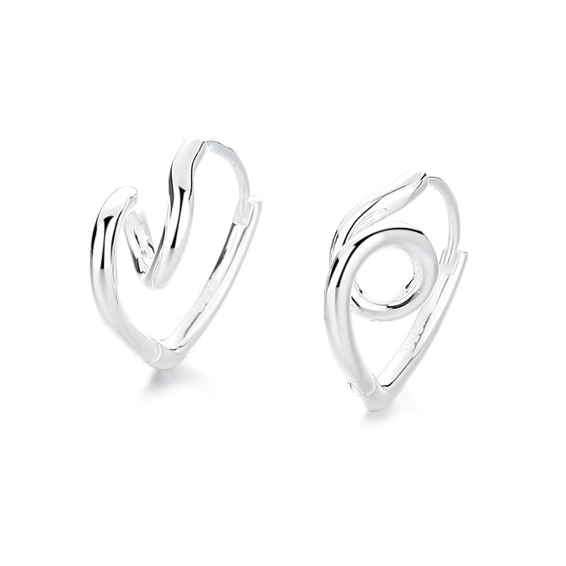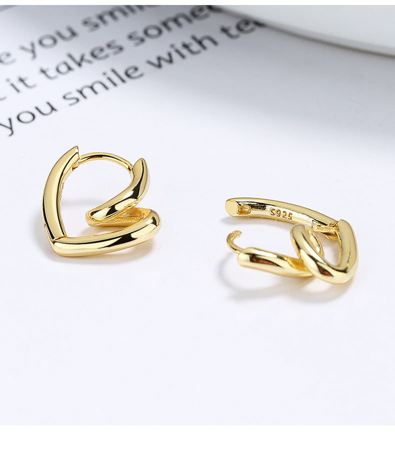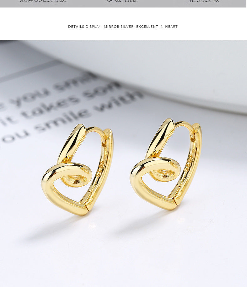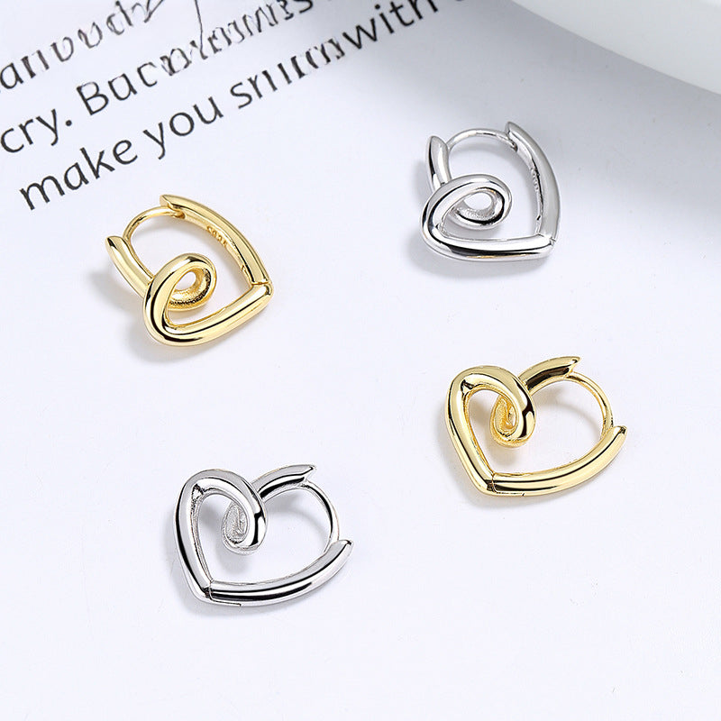 Rockyu S925シルバー&ゴールド 不規則ツイストハート フープピアス レディース