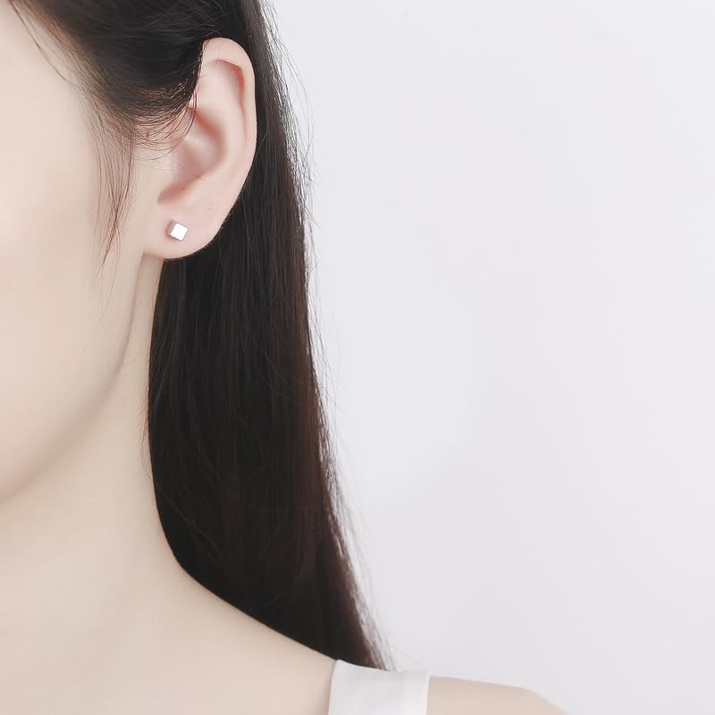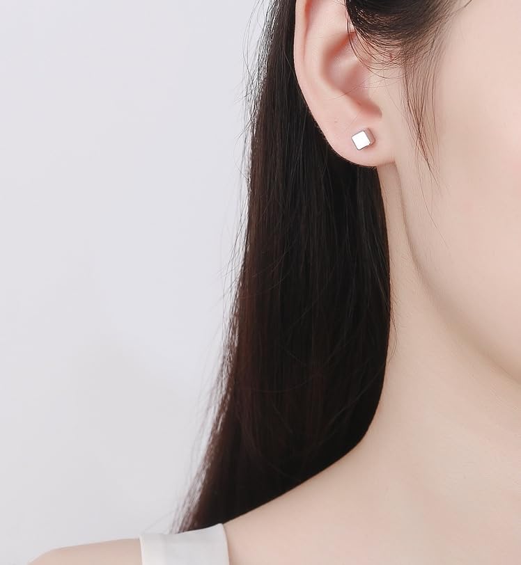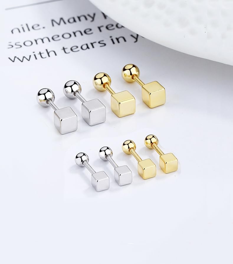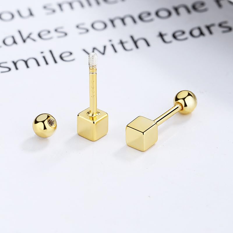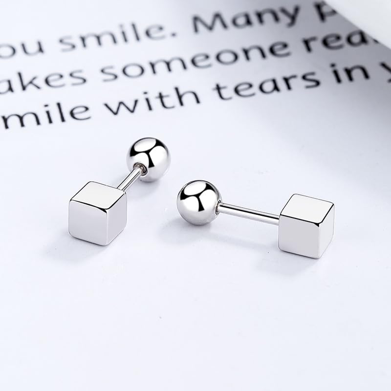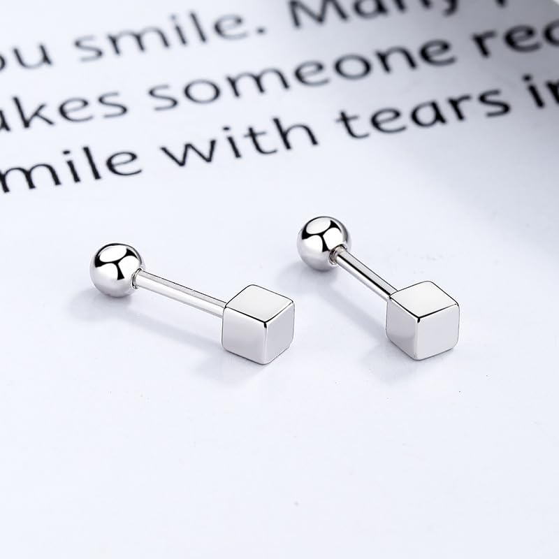 Rockyu シルバー925 キューブスクエア スタッドピアス スクリューバック