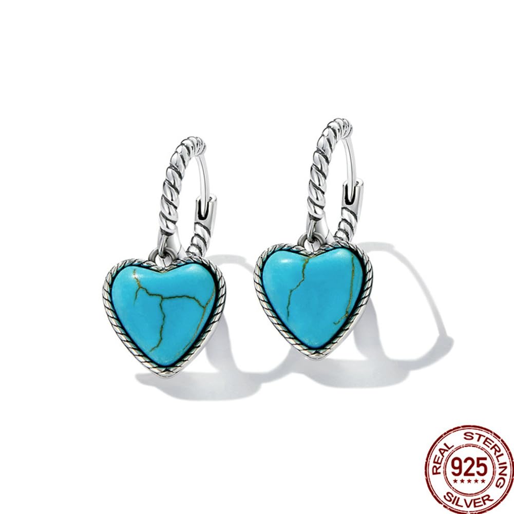 Rockyu シルバー925 ハート×ターコイズ フープピアス(ツイストデザイン)