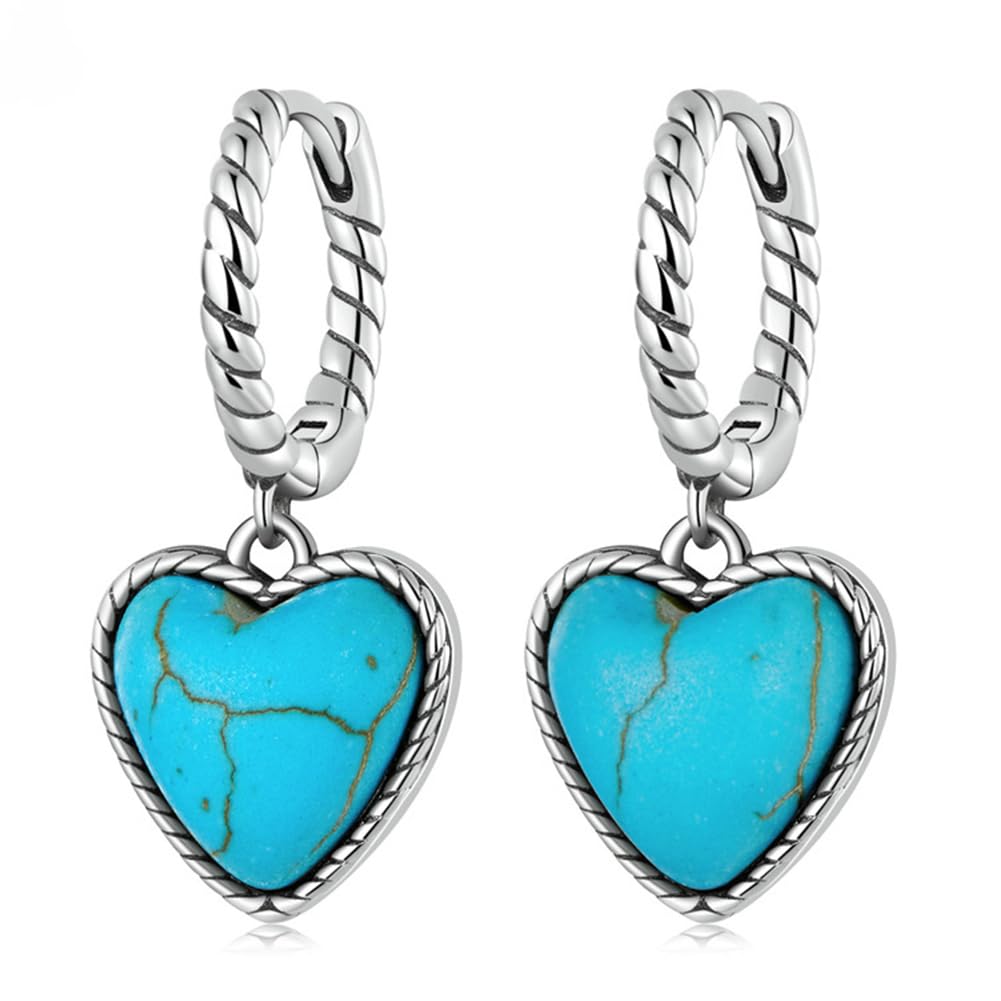 美しい青が印象的なトルコ石(ターコイズ)を、ねじれたツイストデザインのシルバーフープに合わせたこの一品。ハートのシルエットと天然石の風合いが、ナチュラルで優しい印象を演出します。