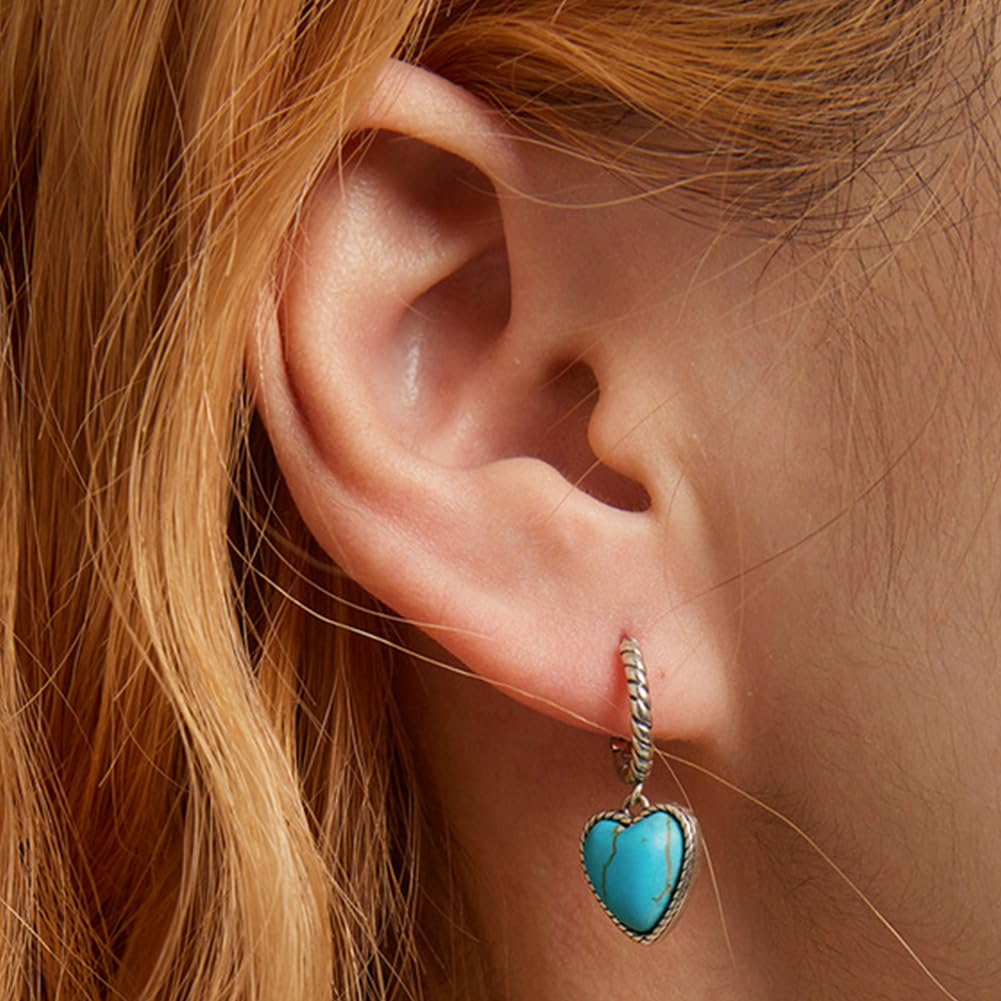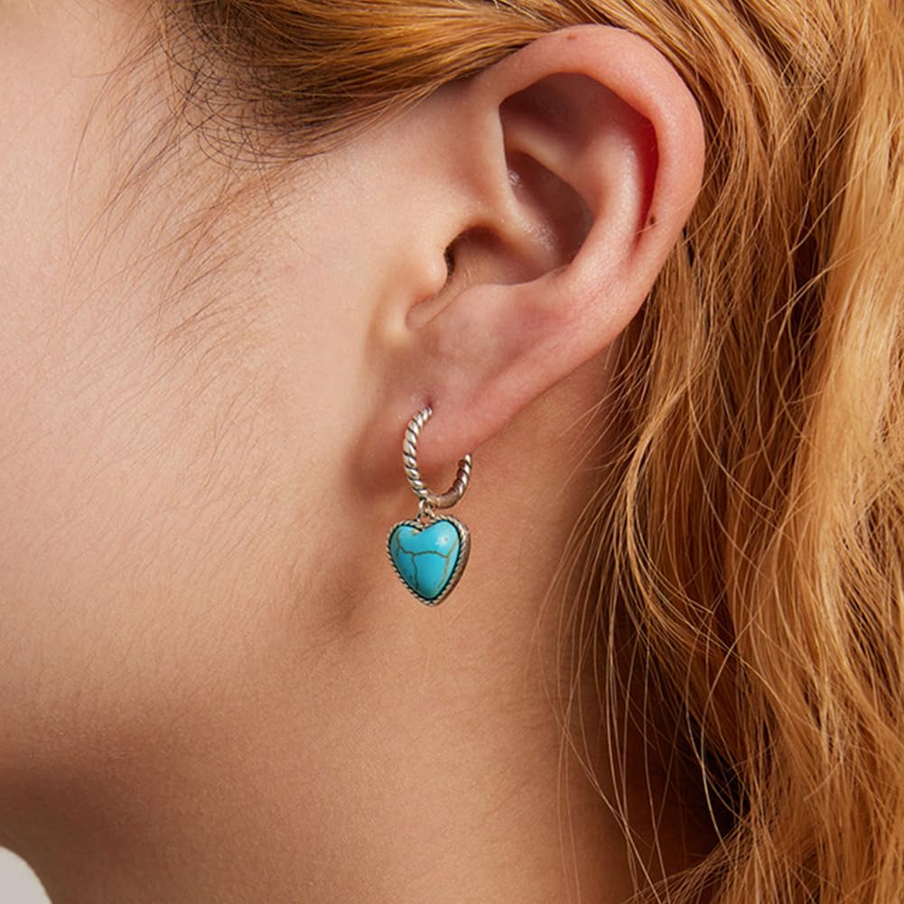 Rockyuから、耳元にさりげない癒しと愛らしさを届ける、ハート型ターコイズのフープピアスが登場。