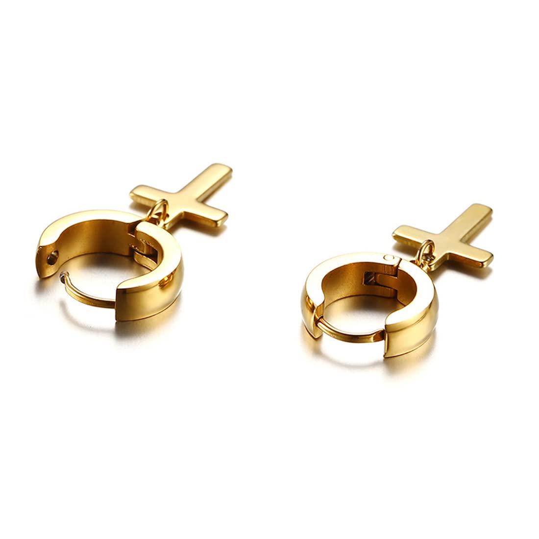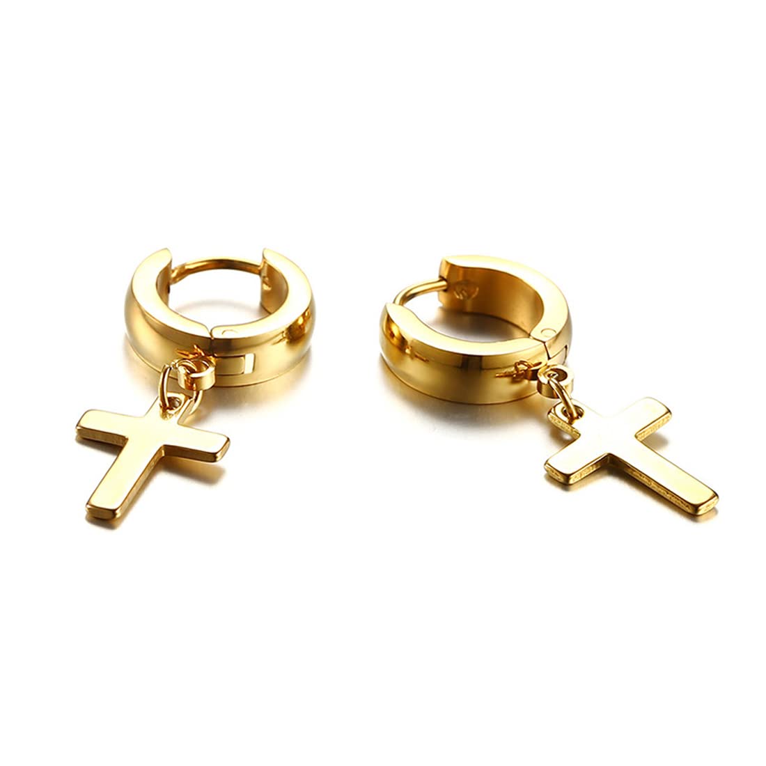 Rockyu ピアス レディース メンズ ゴールド クロス リングピアス フープ 十字架チャーム ステンレス製 金属アレルギー対応 ペアアクセサリー