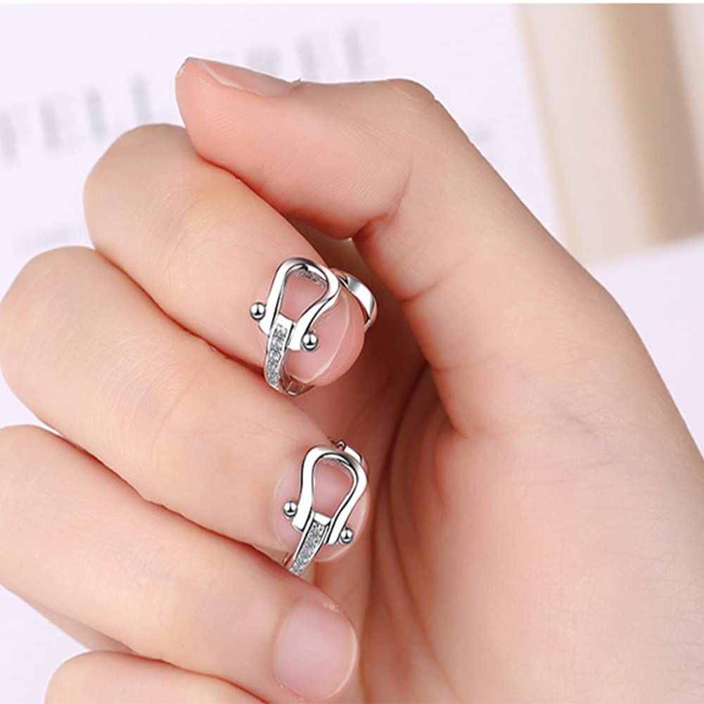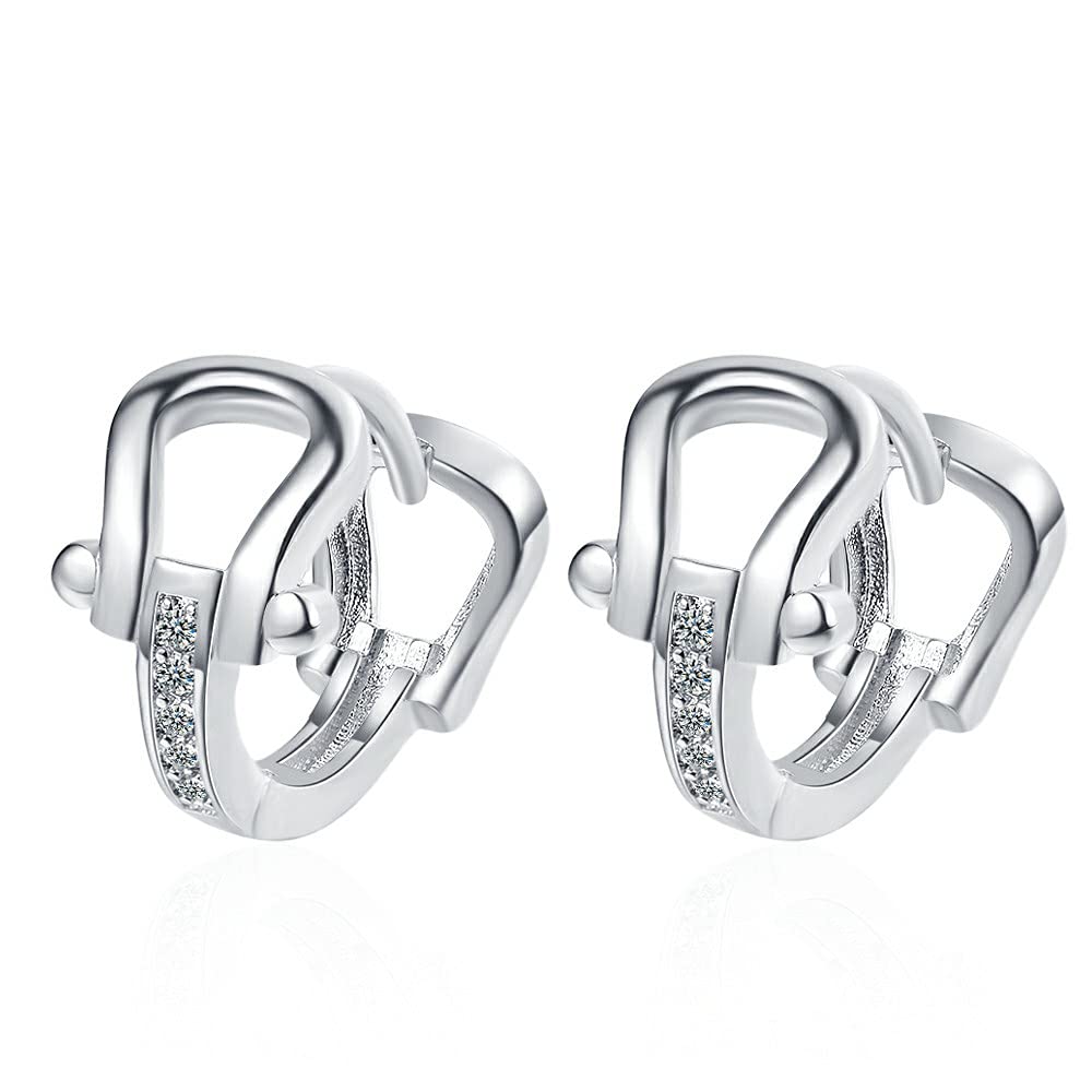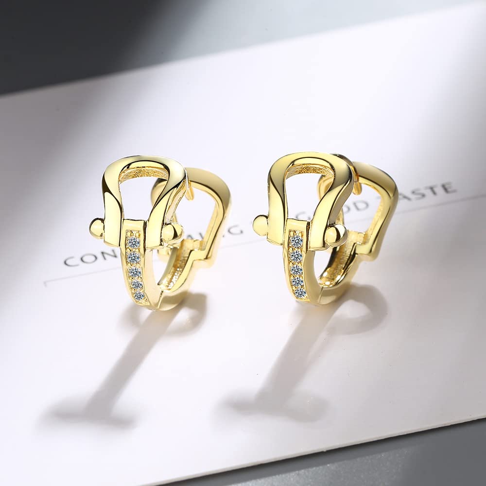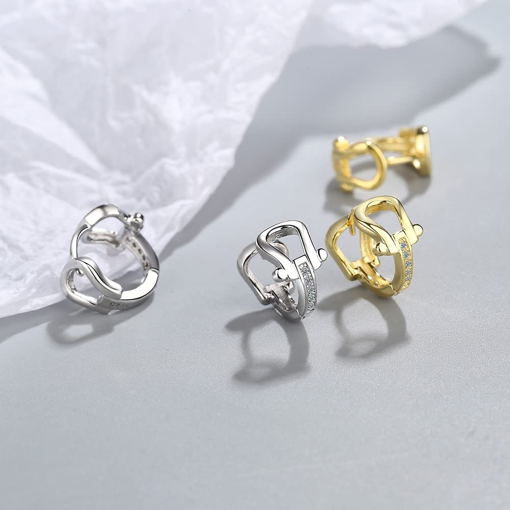 Rockyu 馬蹄モチーフフープピアス レディース シルバー925 ジルコニア ゴールド&シルバー 金属アレルギー対応