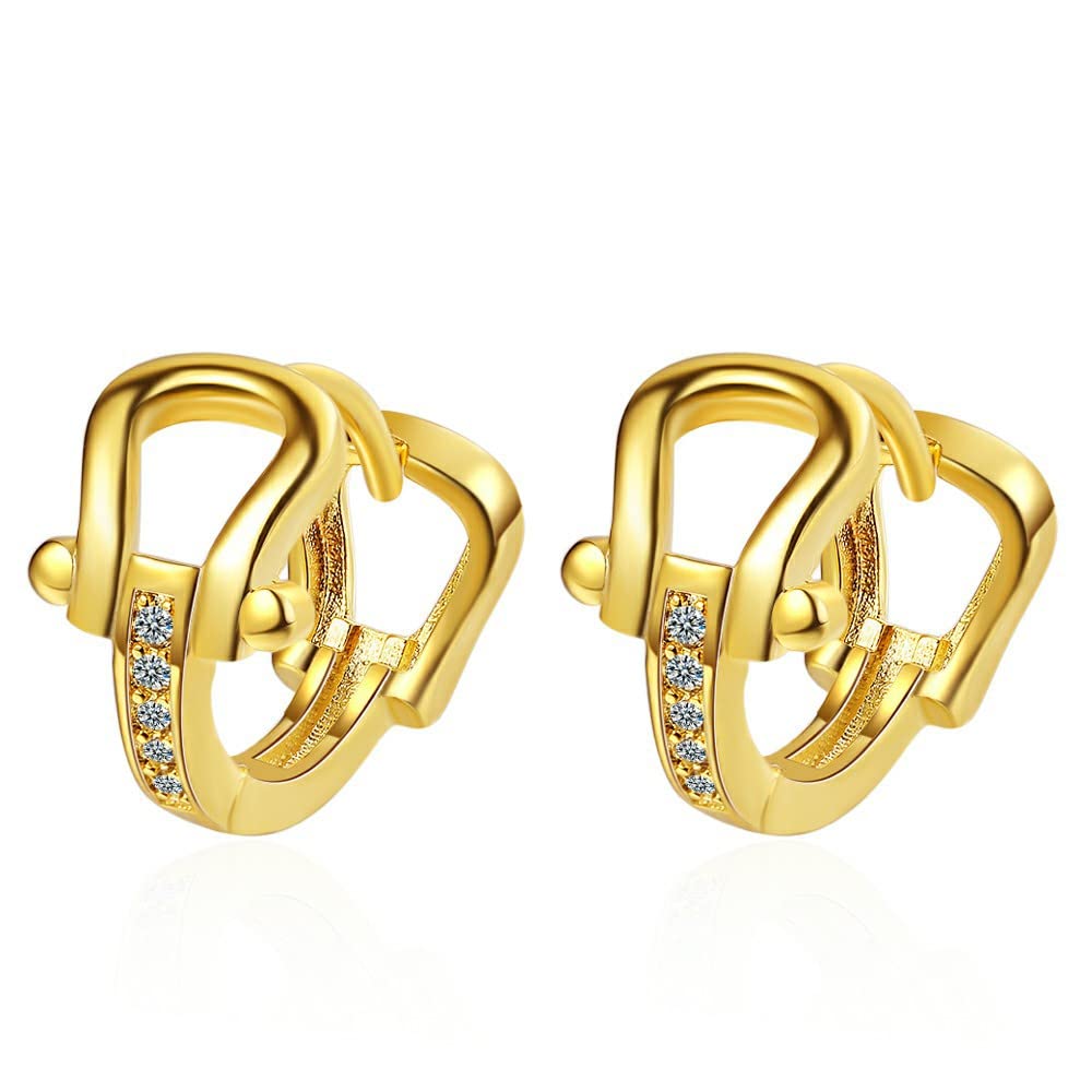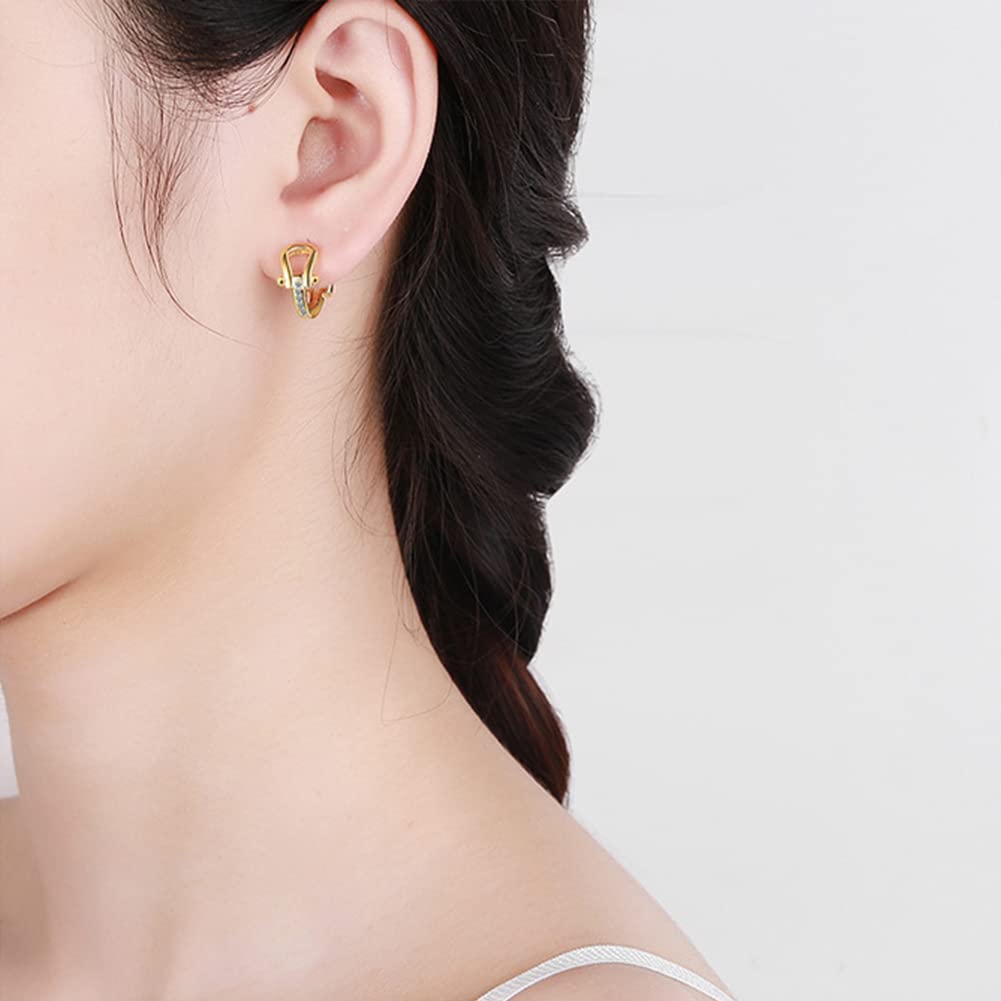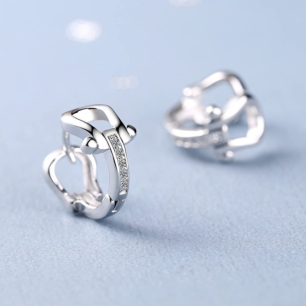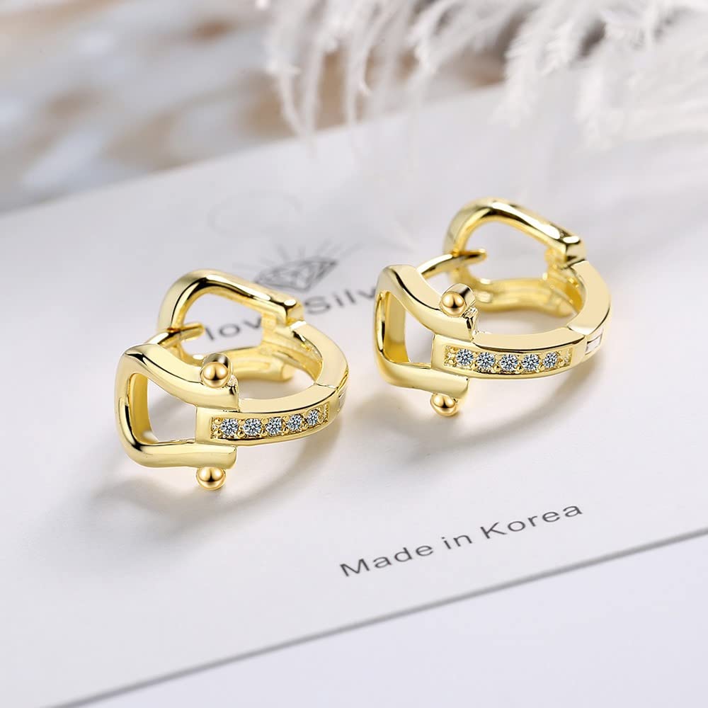 Rockyu 馬蹄モチーフフープピアス レディース シルバー925 ジルコニア ゴールド&シルバー 金属アレルギー対応