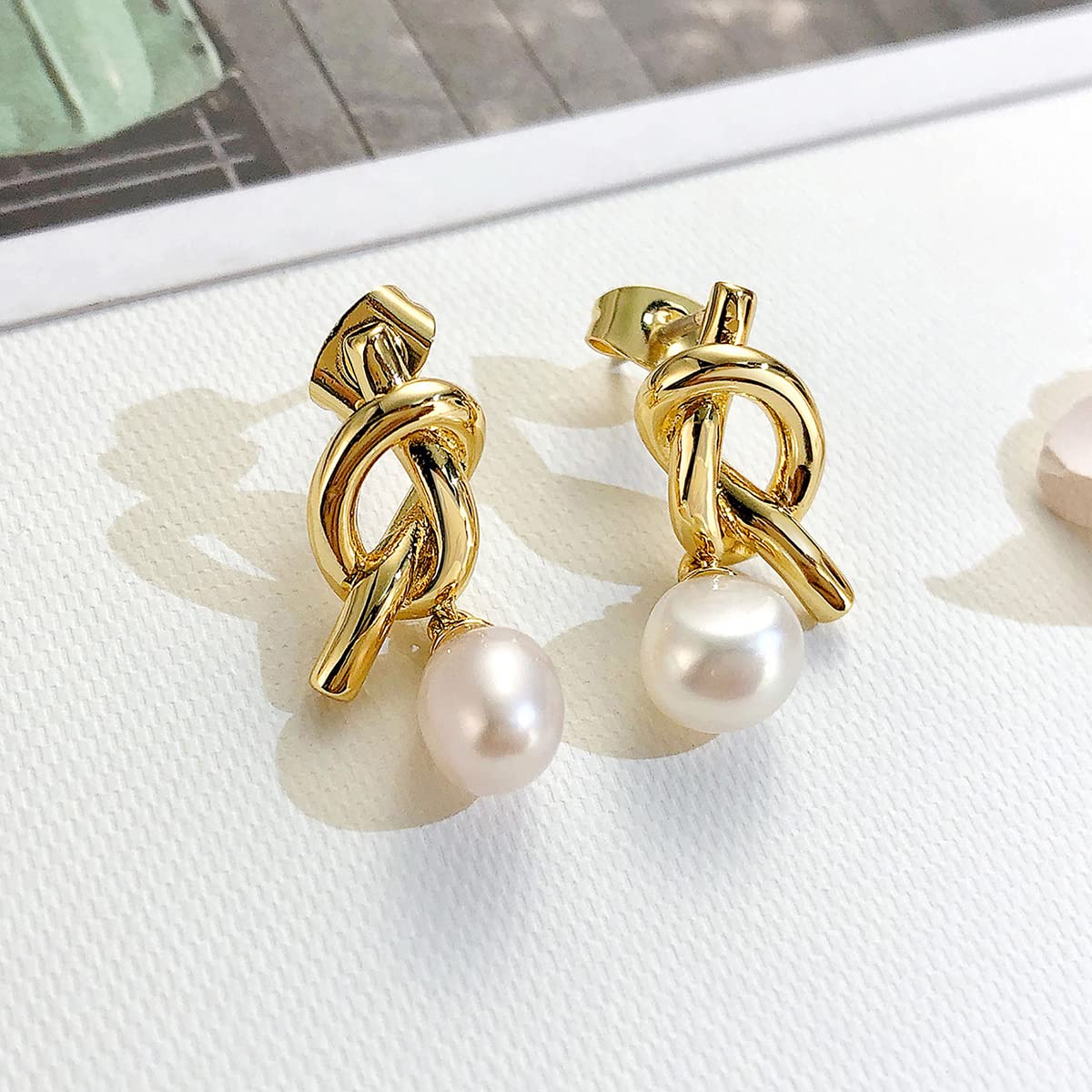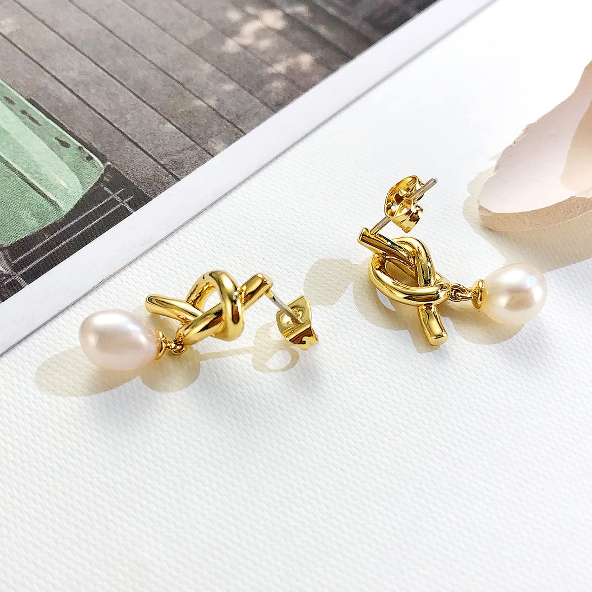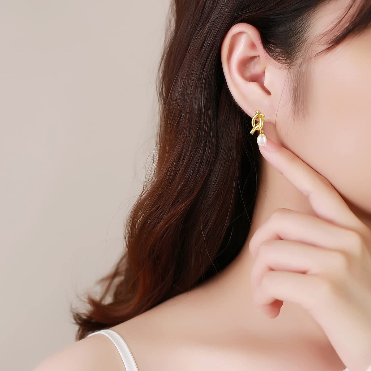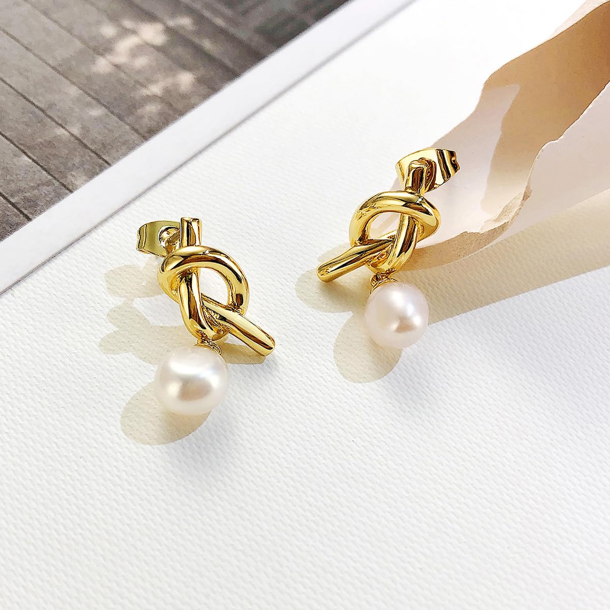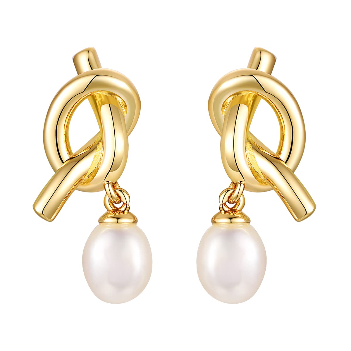 Rockyu ゴールドノットパールピアス ステンレス製 レディース