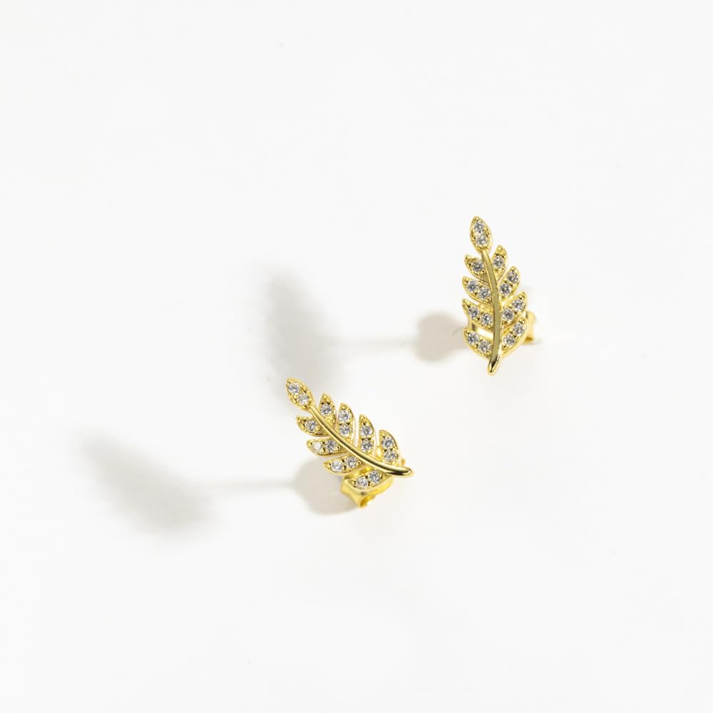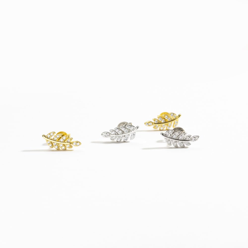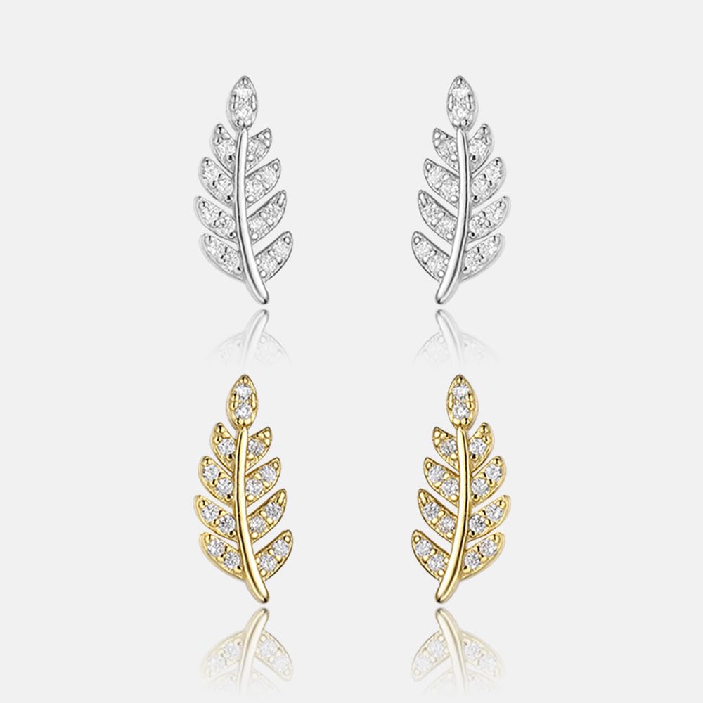 Rockyu レディースリーフピアス シルバー925 ジルコン 輝き上品 スタッドタイプ ギフトにもぴったり