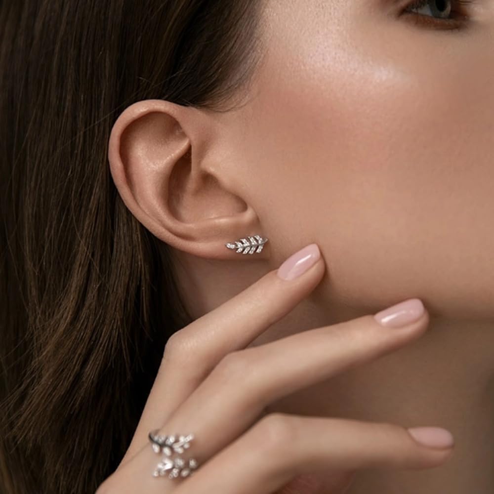Rockyuが贈る、洗練されたリーフモチーフのレディースピアス。シルバー925の上質な輝きに、ジルコンを贅沢にあしらったデザインが耳元を華やかに彩ります。自然の葉を思わせる繊細なフォルムは、横顔をより女性らしく引き立て、シンプルながらも高級感を感じさせる仕上がり。普段のコーディネートにはもちろん、特別な日の装いにもマッチし、幅広いシーンで活躍します。スタッドタイプで安定した着け心地を実現し、軽やかで長時間でも快適。誕生日やクリスマスのギフトにも喜ばれる逸品です。Rockyuのピアスで、あなたの日常に自然な輝きをプラスしてみませんか。