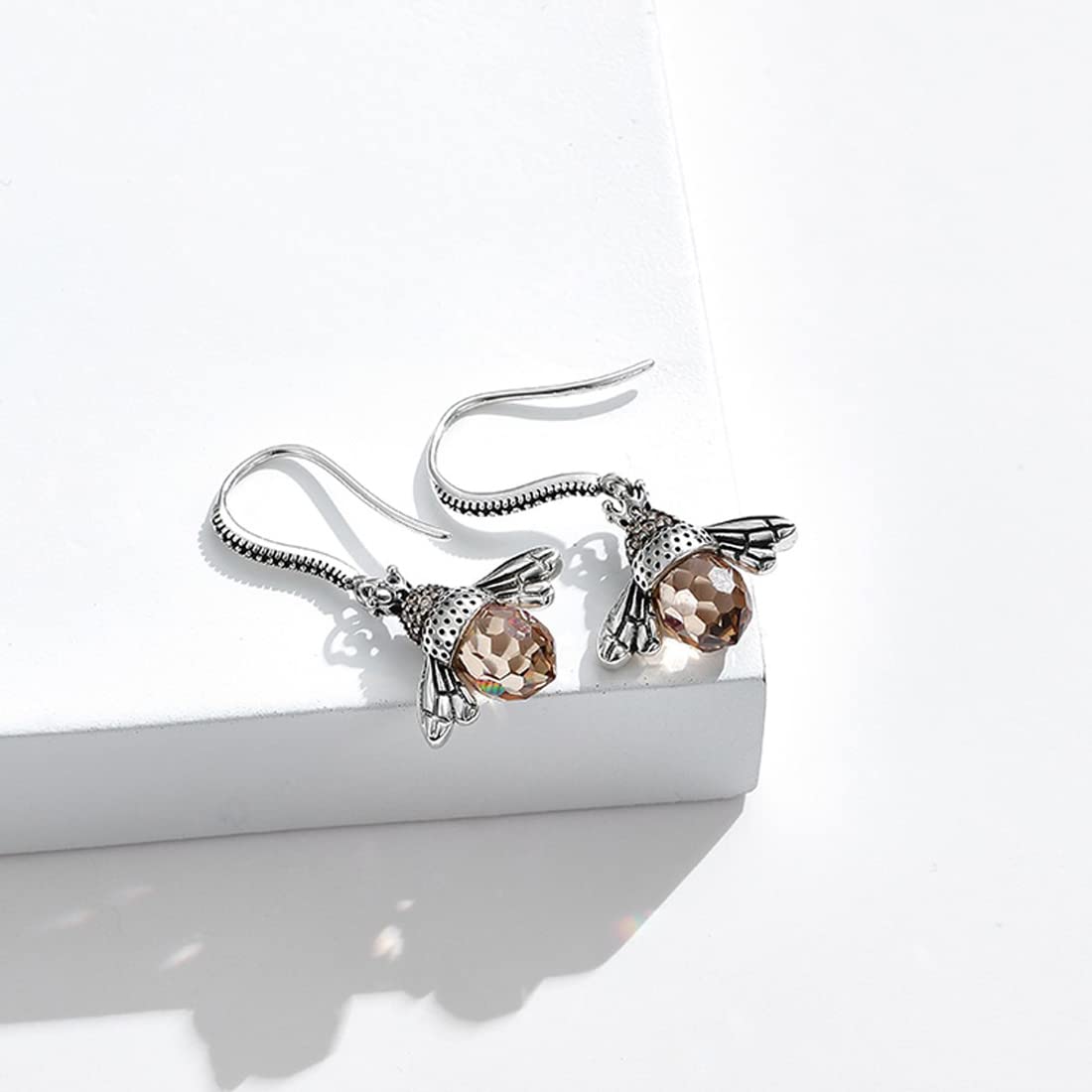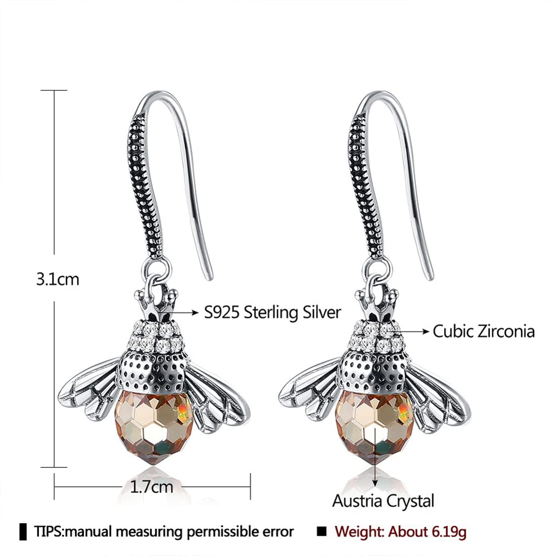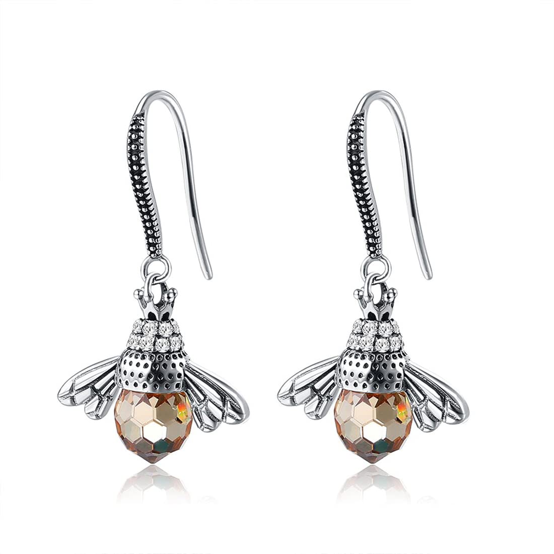Rockyu ピアス レディース ミツバチ シルバー925 王冠デザイン オレンジクリスタル アレルギー対応