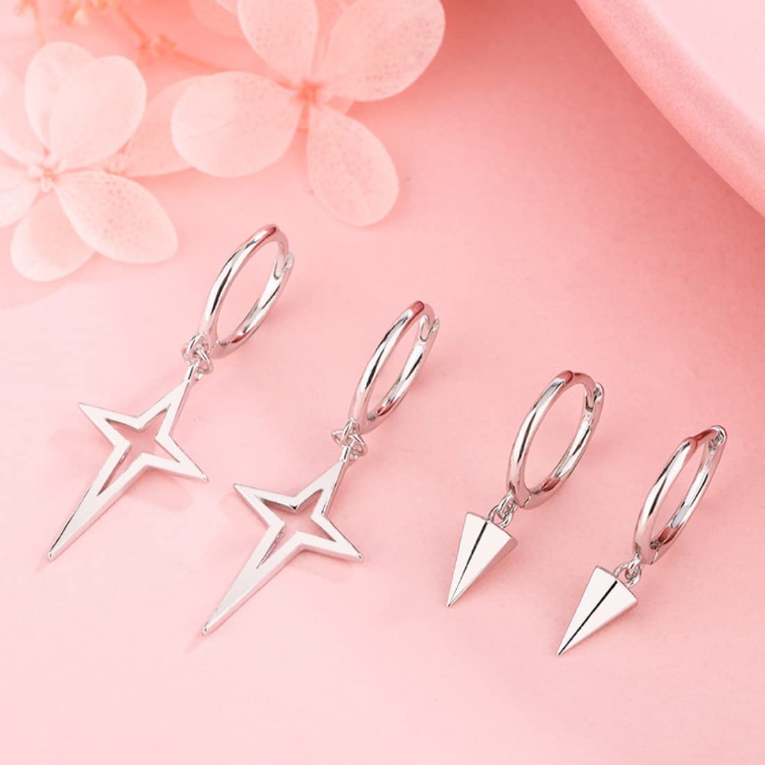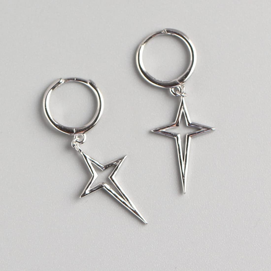 Rockyu 星型&スタッズフープピアス レディース|シルバー925・3色展開・金属アレルギー対応