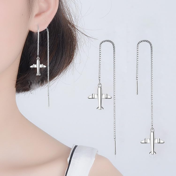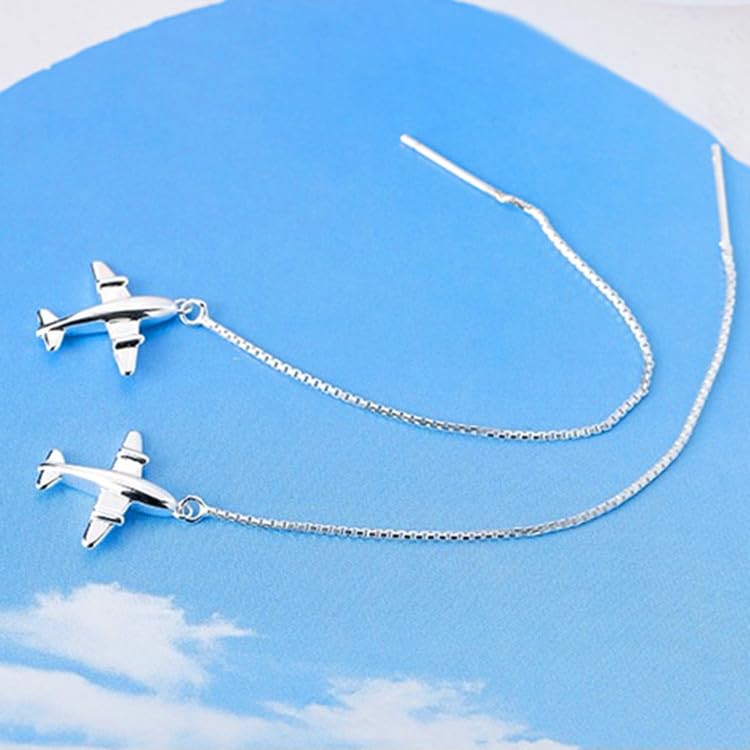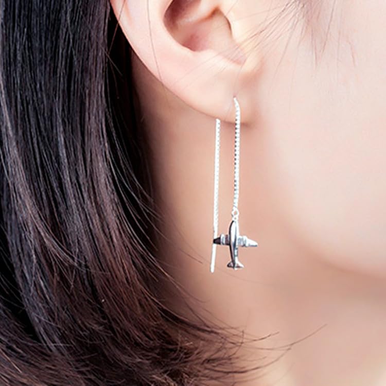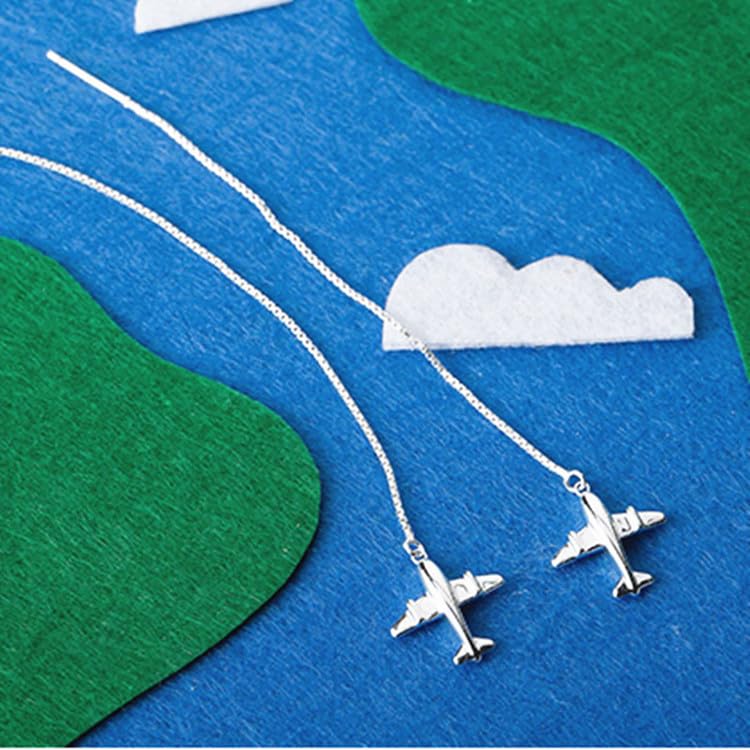 Rockyu ピアス レディース シルバー925 飛行機モチーフ ロングチェーン 両耳用 個性派 シンプル 旅行 ギフト