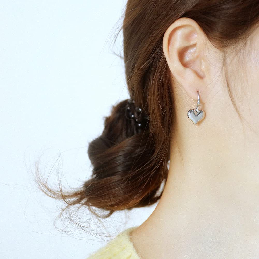 Rockyu ピアス レディース チタン ハート 鏡面 シルバー 光面 金属アレルギー対応