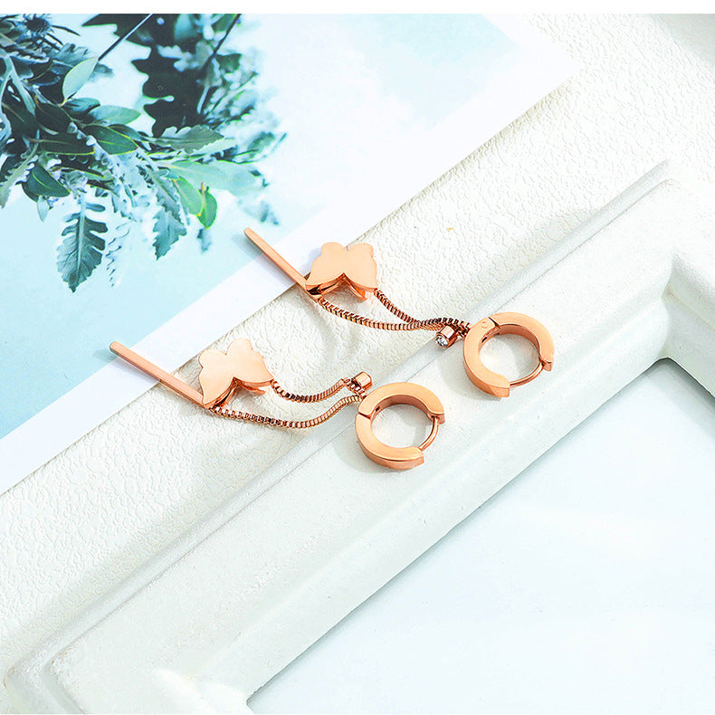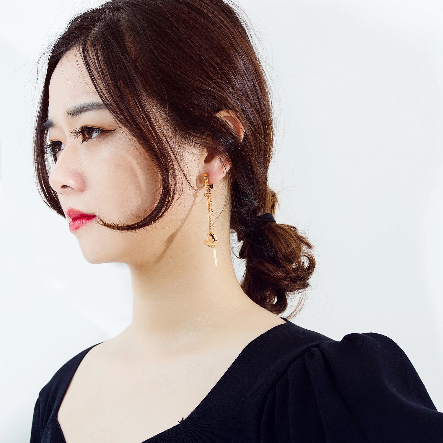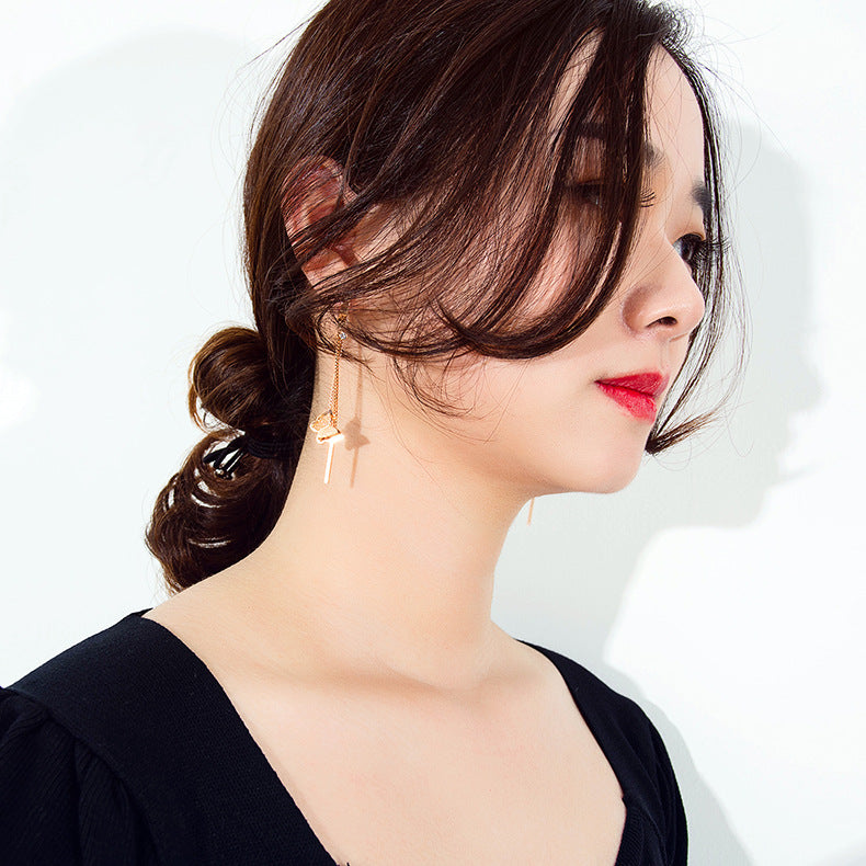 Rockyuが提案する、女性らしさと可憐さを兼ね備えたピンクゴールドのロングチェーンピアス。繊細な蝶モチーフとスティックデザインが揺れるたびに光を受けて輝き、横顔を美しく引き立てます。全長55mmのスリムなシルエットは、縦ラインを強調して顔周りをすっきりと見せる効果も。ステンレススチールにローズゴールドコーティングを施し、金属アレルギーにも対応。7gの軽量設計で長時間の着用も快適です。カジュアルからフォーマルまで幅広く使えるデザインで、普段使いはもちろん特別な日のアクセントにもぴったり。Rockyuのピアスは、耳元に軽やかな華やぎをプラスするアイテムです。