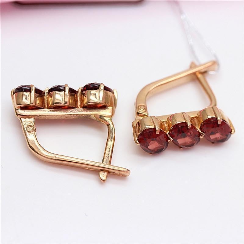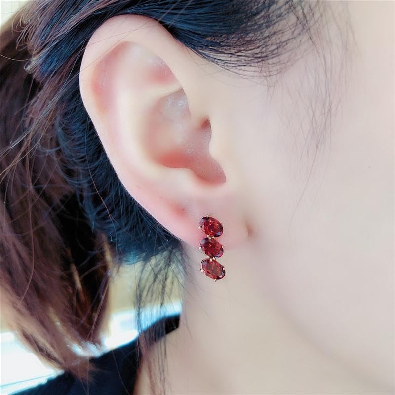 Rockyu から登場したこちらのレディースピアスは、エレガントなピンクゴールドの地金に深みのあるレッドジルコニアを贅沢に3石並べた、華やかで上品なデザインが魅力。きらめく赤い輝きが耳元で揺れ、女性らしい色気と気品を引き立ててくれます。
