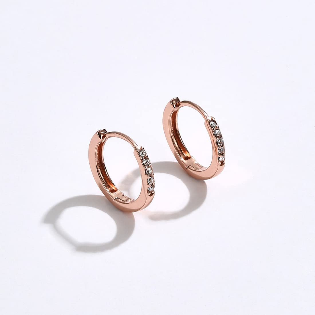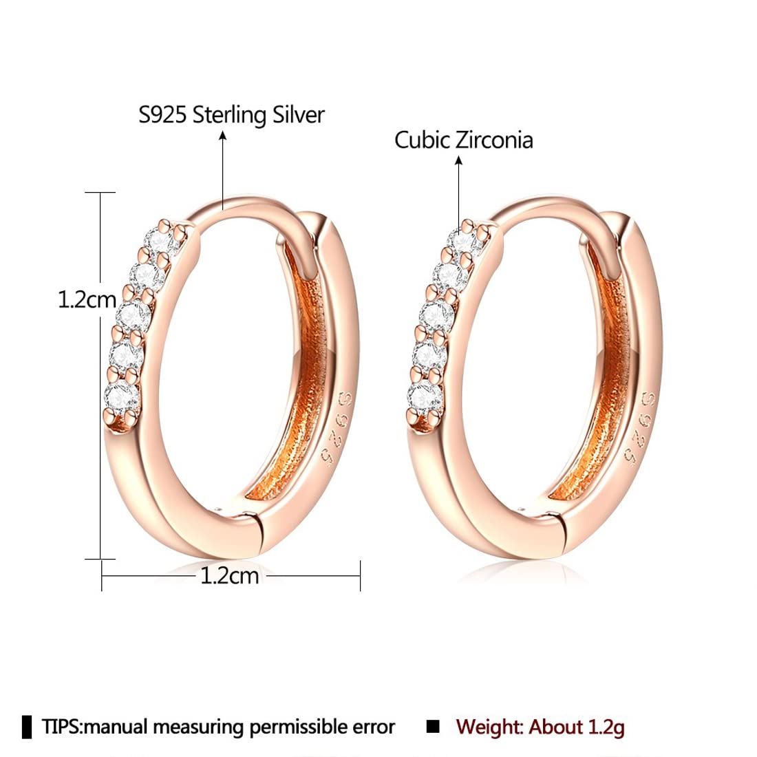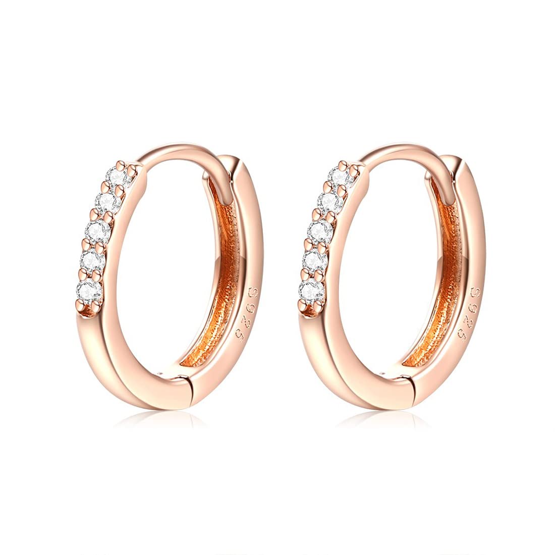Rockyu シルバー925製 ピンクゴールドフープピアス レディース 五粒ジルコニア付き