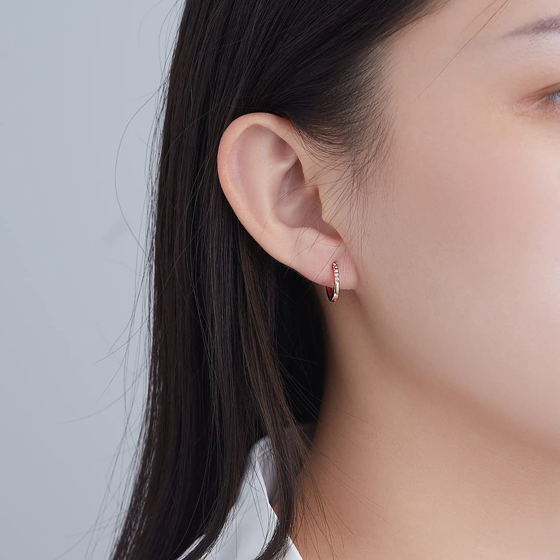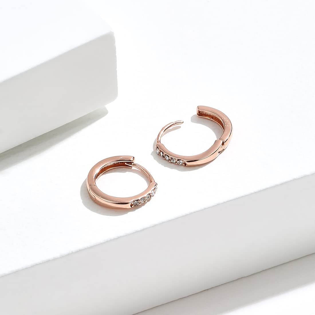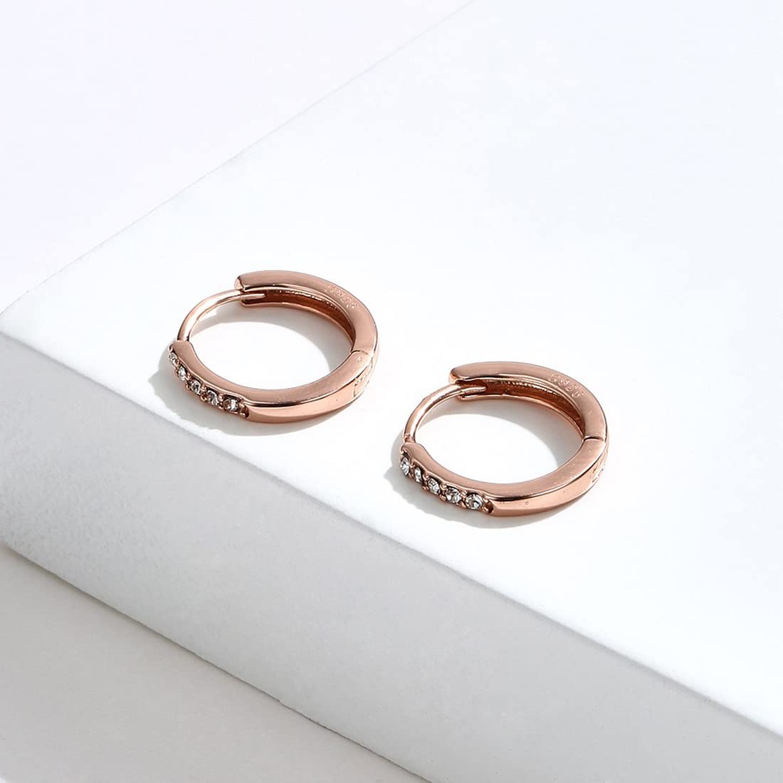 Rockyu シルバー925製 ピンクゴールドフープピアス レディース 五粒ジルコニア付き
