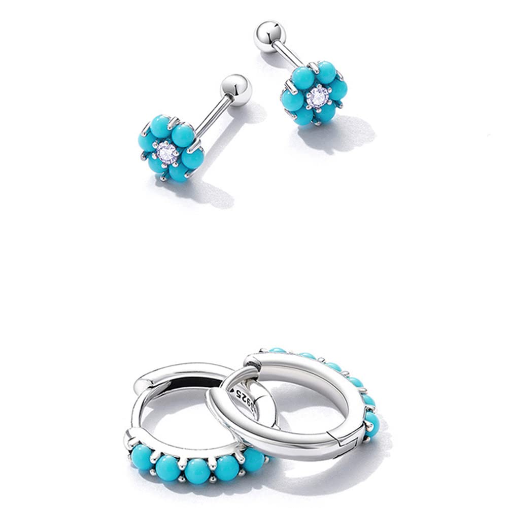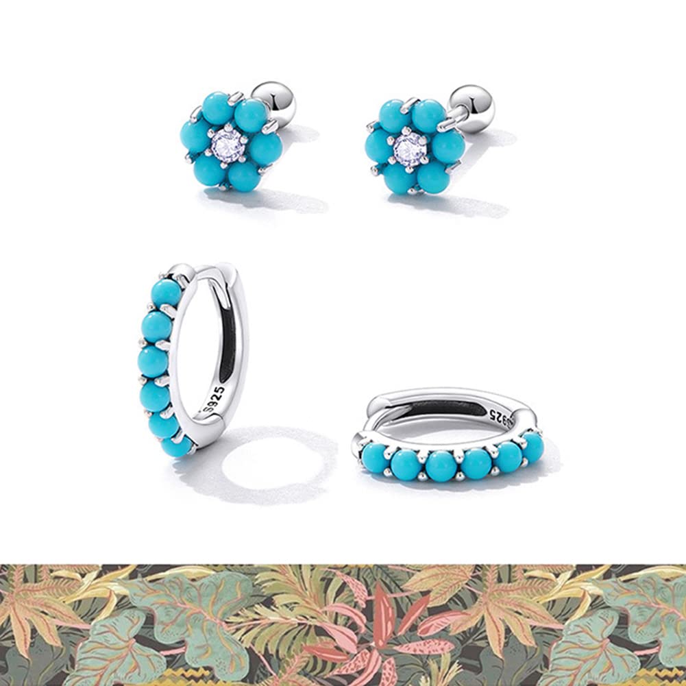 Rockyu ピアス レディース フープ シルバー925 ターコイズ 緑松石 金属アレルギー対応