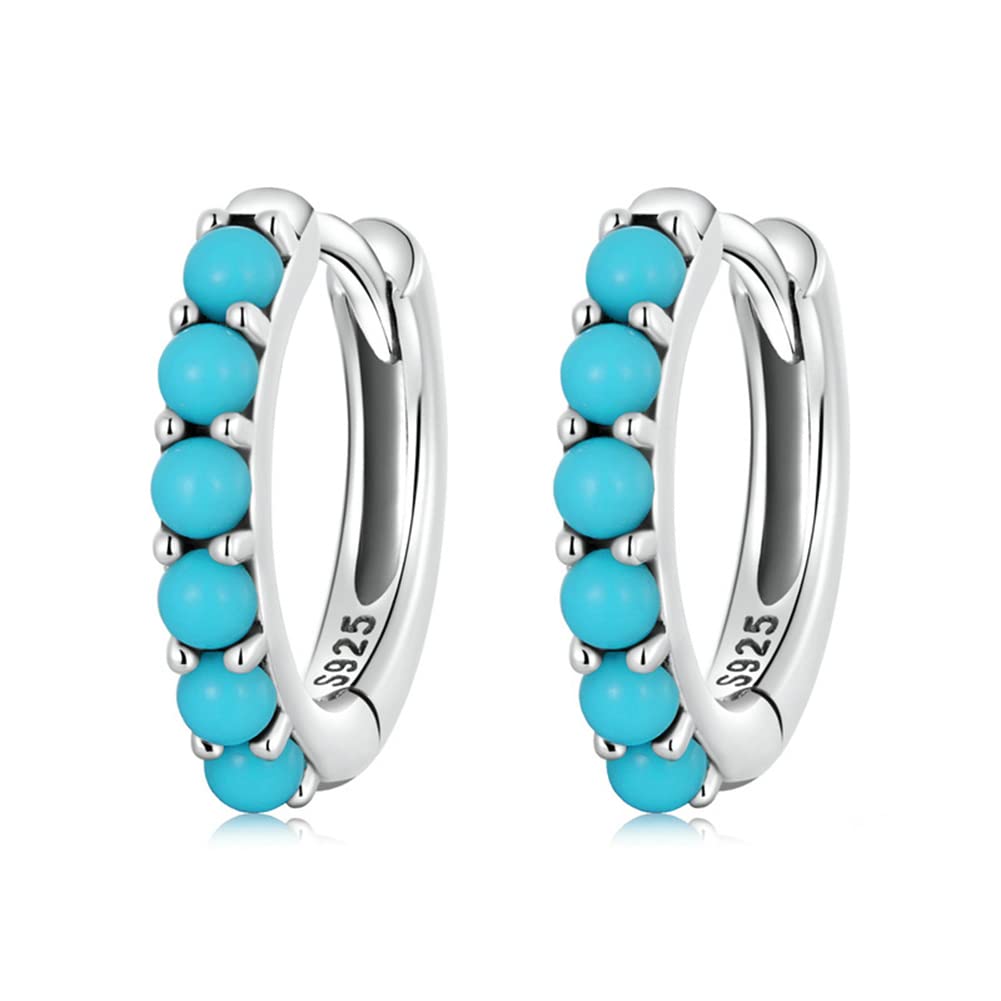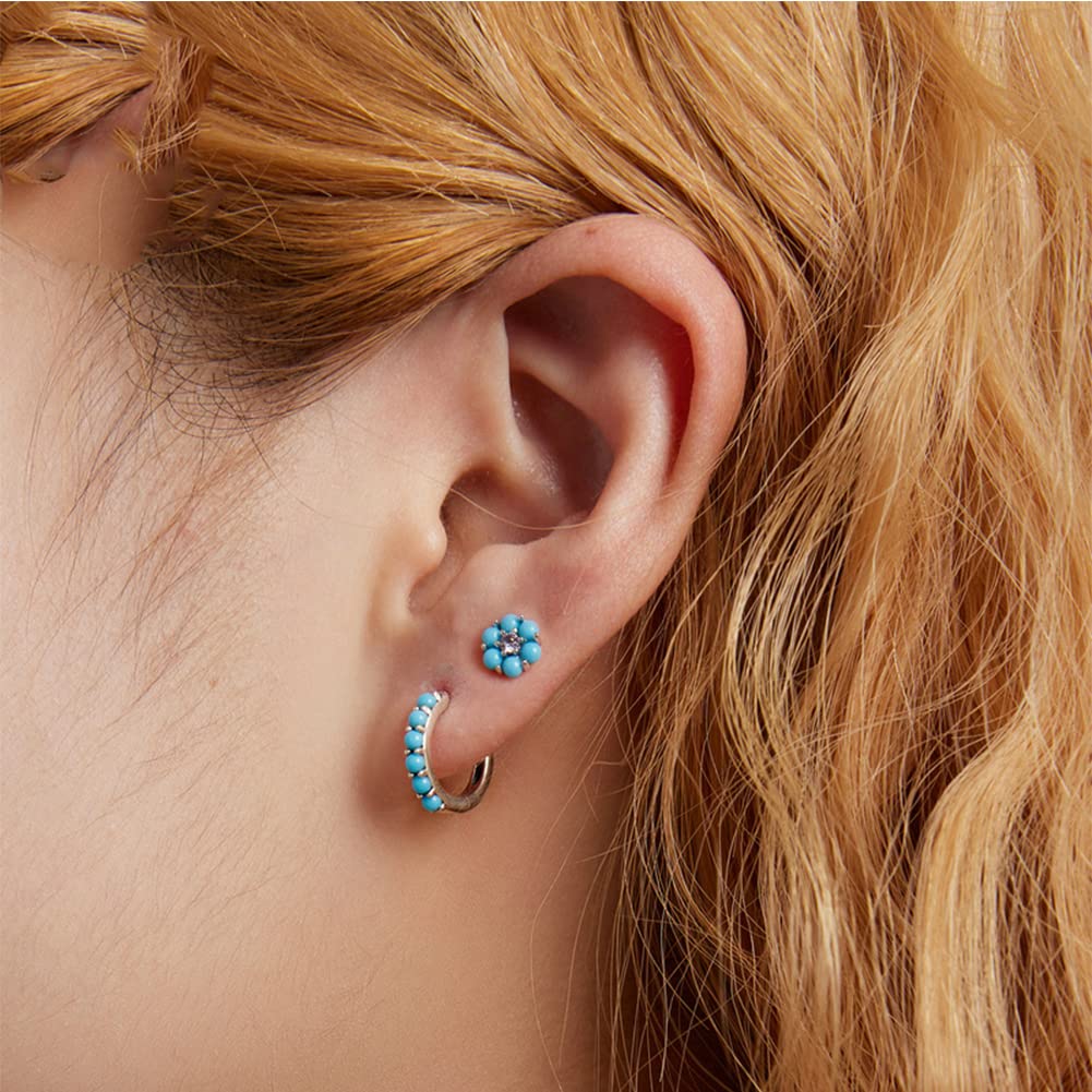 フープの外側に並ぶターコイズが光を受けて爽やかに輝き、ナチュラルでありながら高級感も演出。シルバー925は金属アレルギーに配慮されており、長時間の着用でも快適です。軽やかなデザインは日常使いにぴったりで、旅行やデート、オフィスシーンでも大人の女性らしい品格を添えてくれます。