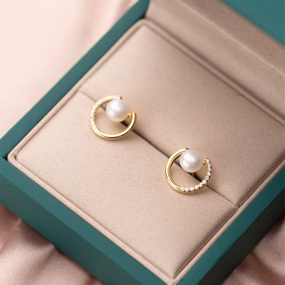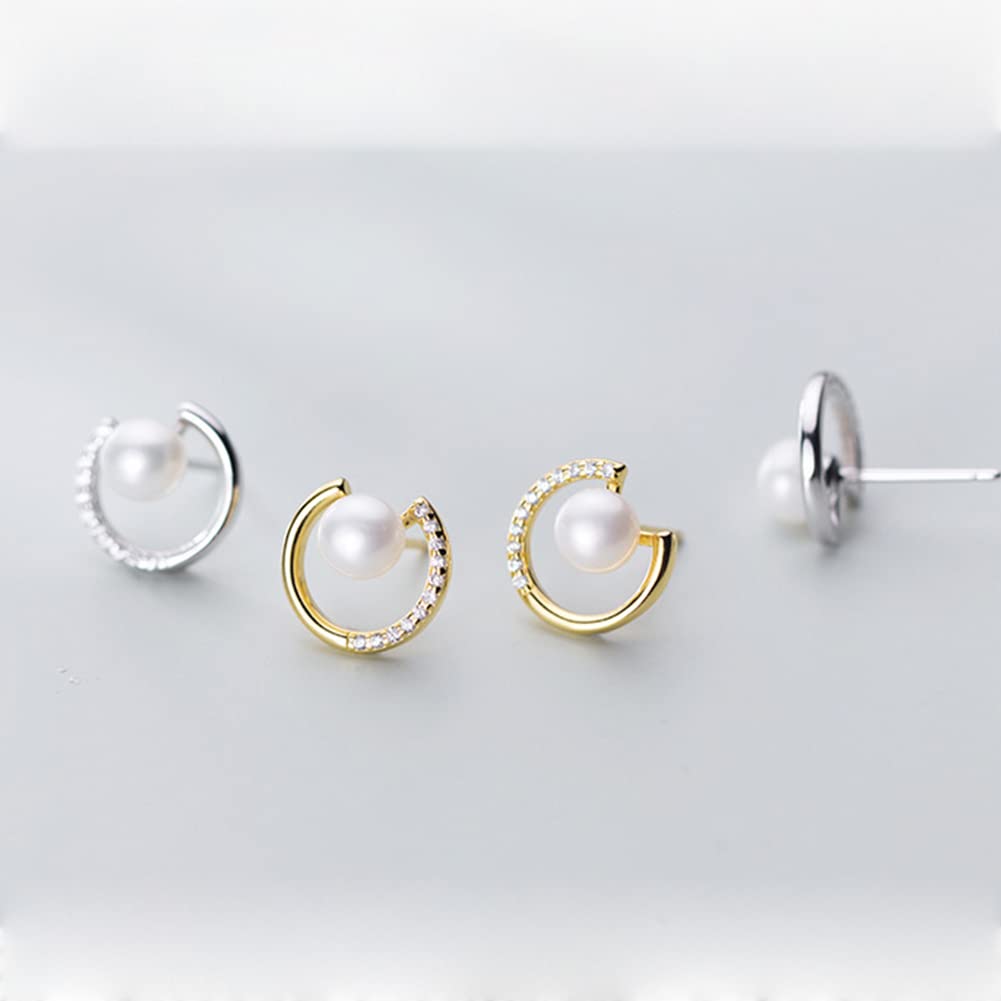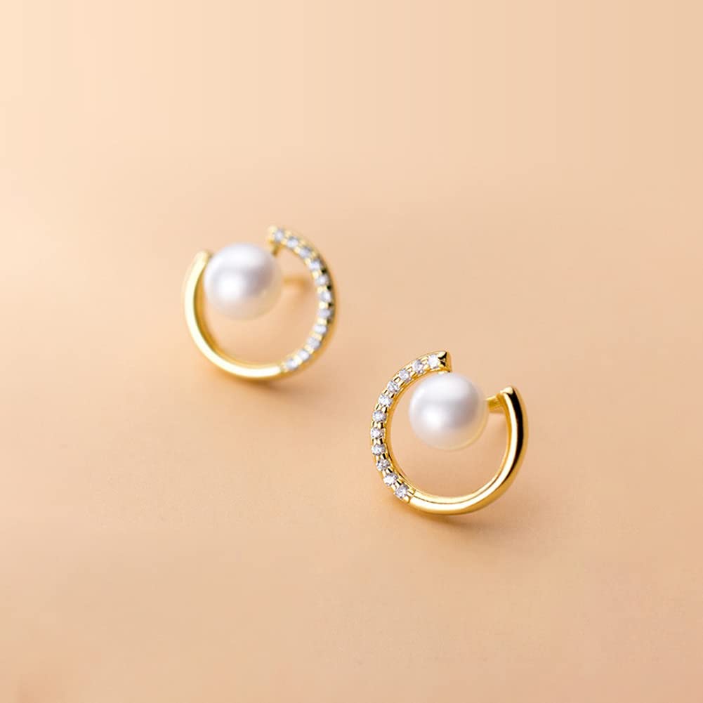 S925パール&ダイヤ風ミニフープピアス|小さな輝きで耳元に気品を