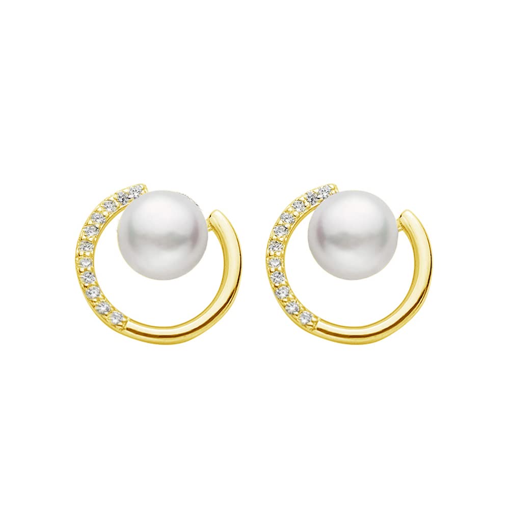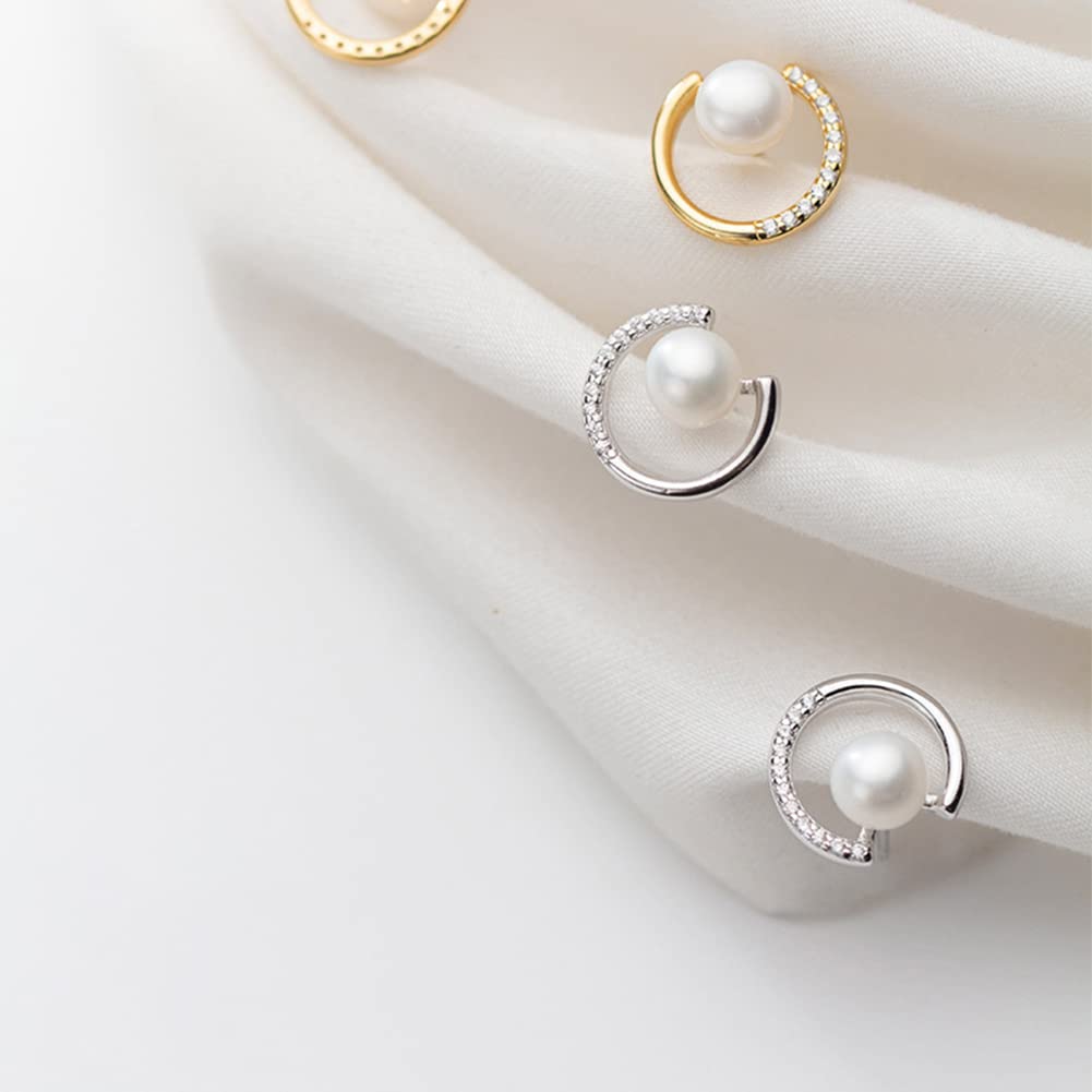 中央にはころんとした上質なフェイクパール。周囲には小粒のストーンがさりげなく並び、視線を自然に集めてくれます。シルバー・ゴールドの2色展開で、どんな肌トーンやファッションにもすっと馴染む万能さもポイント。