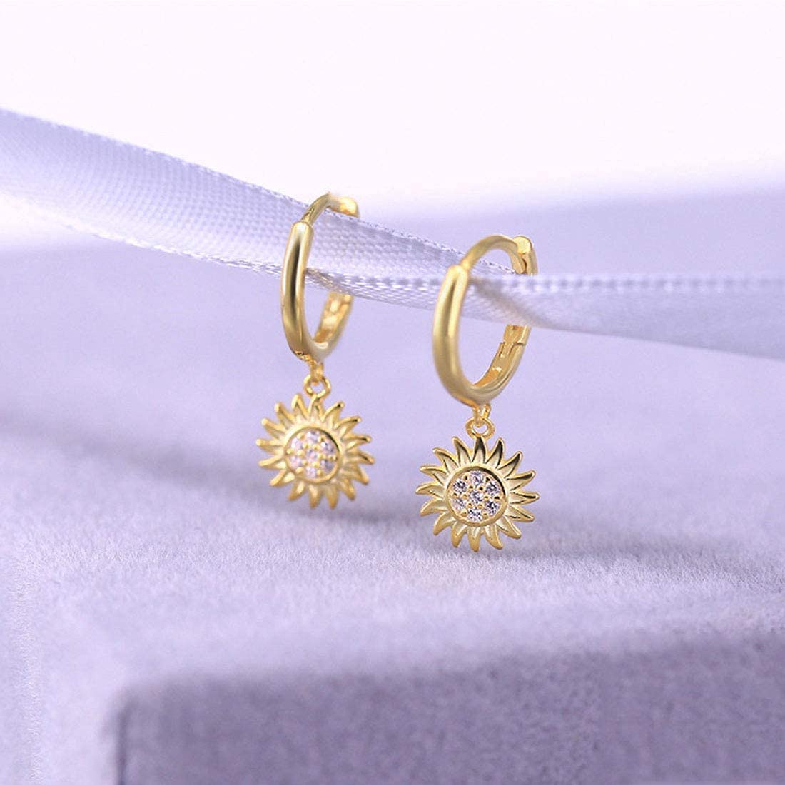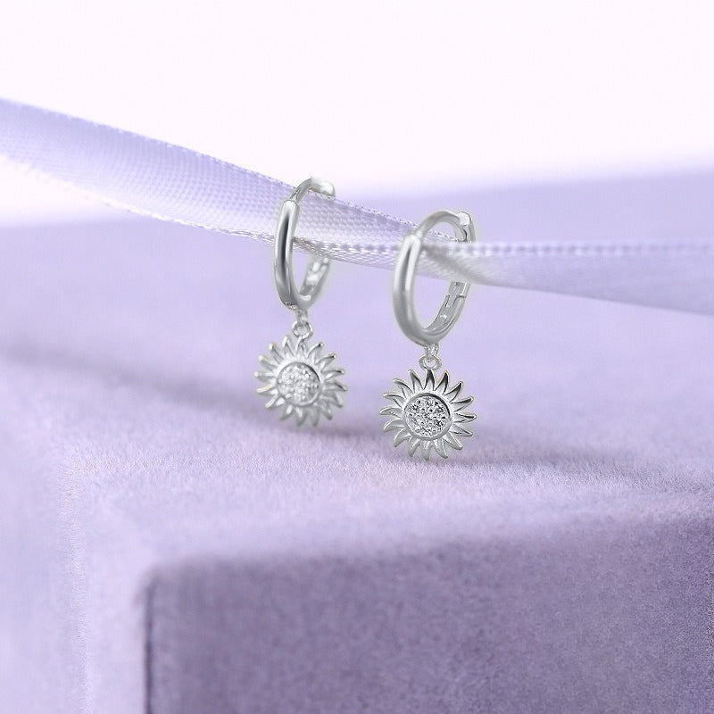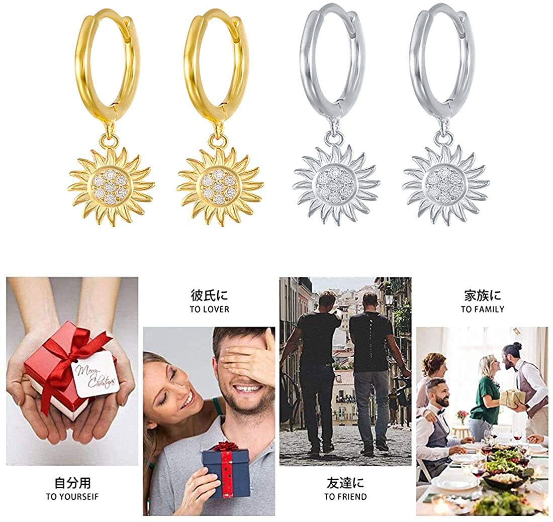 Rockyu ピアス レディース フープ 太陽 向日葵 18金 CZジルコニア シルバー925