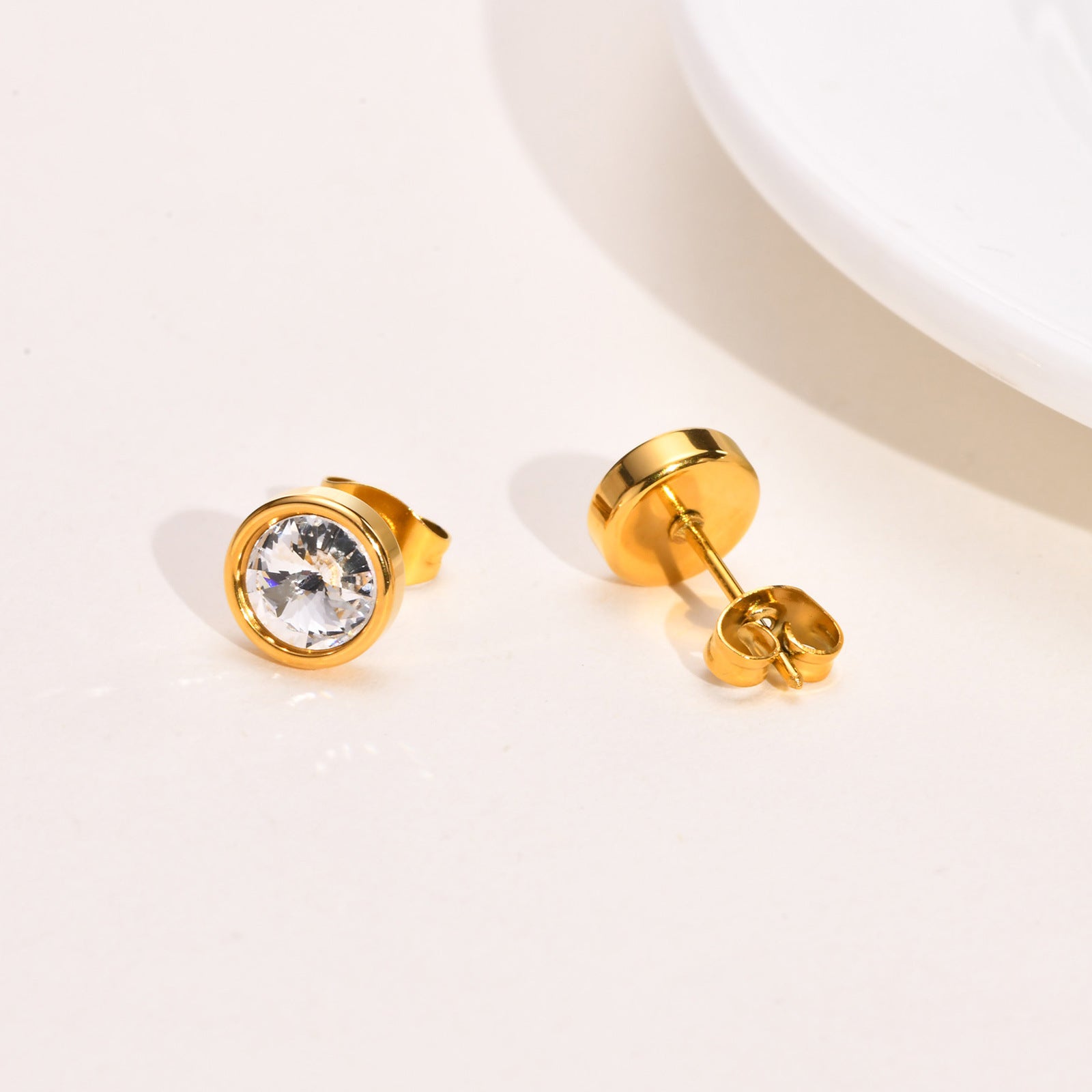 Rockyu ピアス レディース ラウンド 一粒ジルコニア ステンレス製 シルバー&ゴールド 金属アレルギー対応