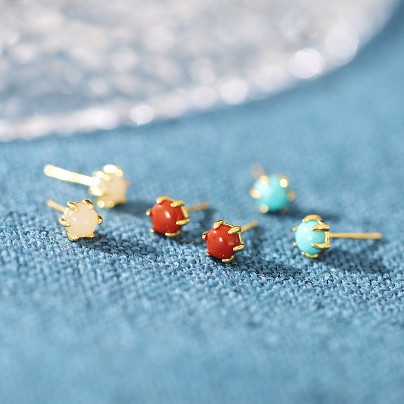 Rockyu ピアス レディース 小さい ターコイズ レッド ホワイト シルバー925 金属アレルギー対応