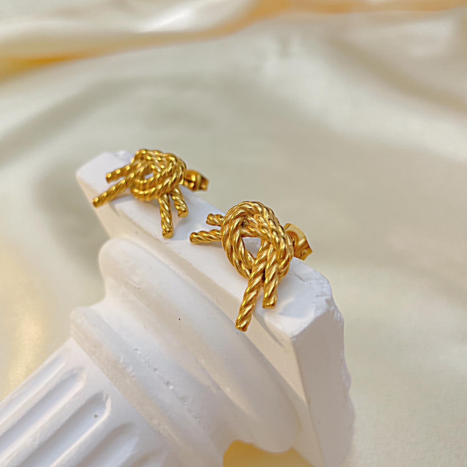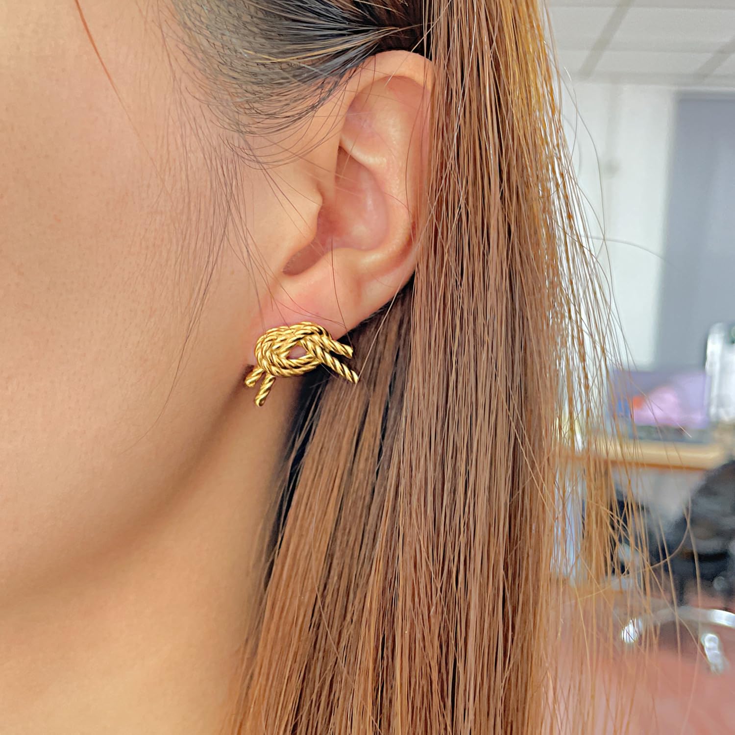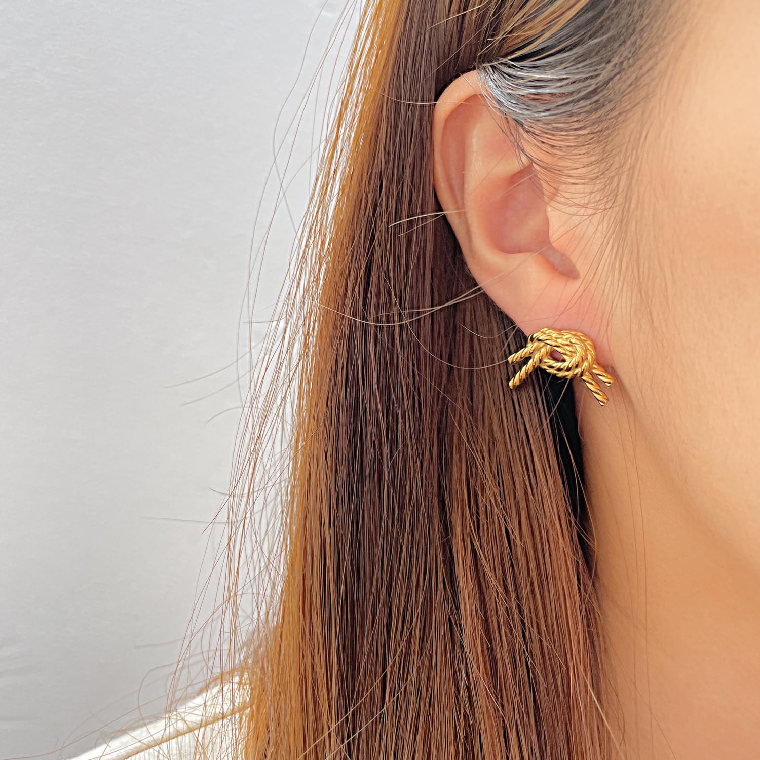 Rockyu から登場した麻花(ロープノット)デザインの結びピアスは、18金の上品な輝きと遊び心あるフォルムが絶妙に融合したアイテム。ステンレス素材をベースにしているため、金属アレルギーに配慮しつつ、しっかりとした耐久性を実現しています。