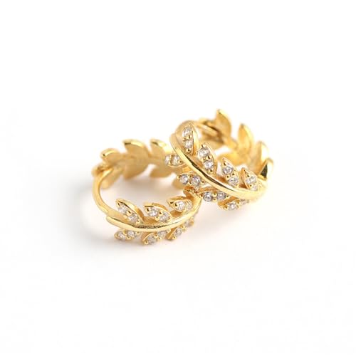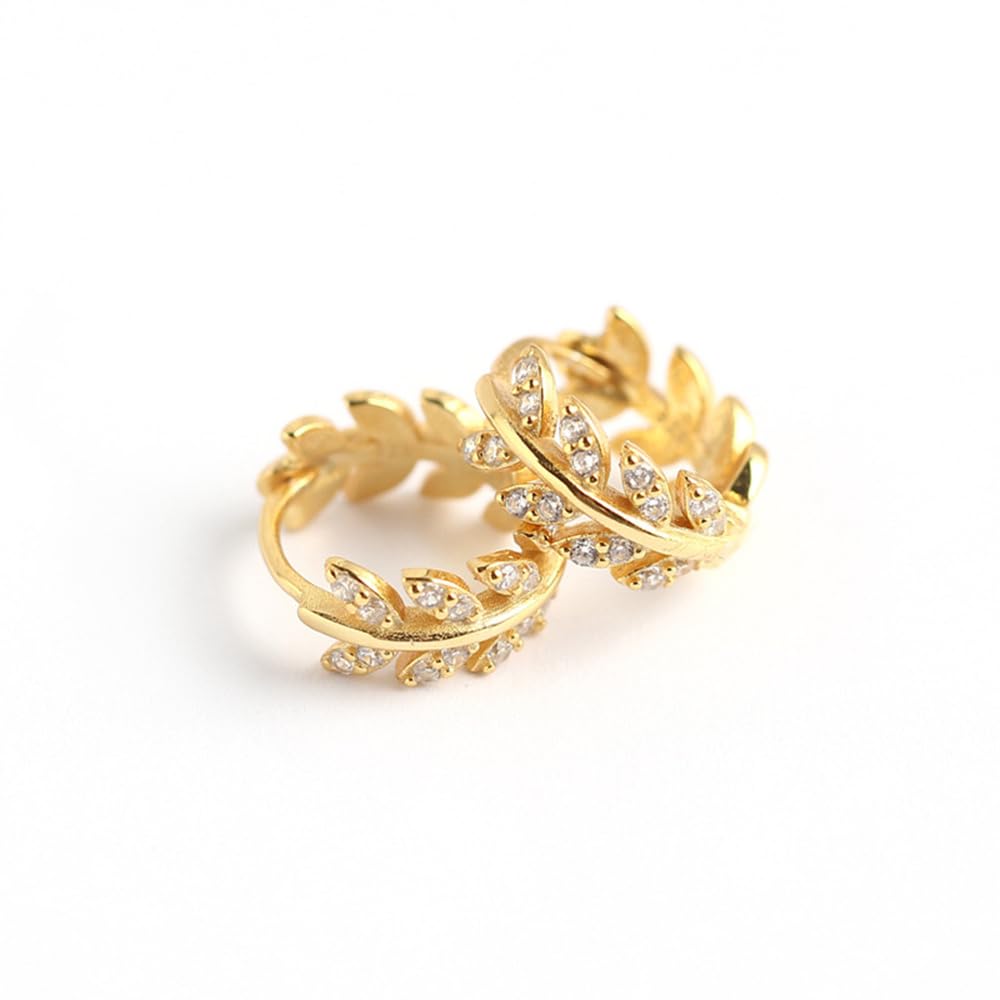 Rockyu ピアス レディース オリーブリーフデザイン フープピアス 18金仕上げ シルバー925 キュービックジルコニア