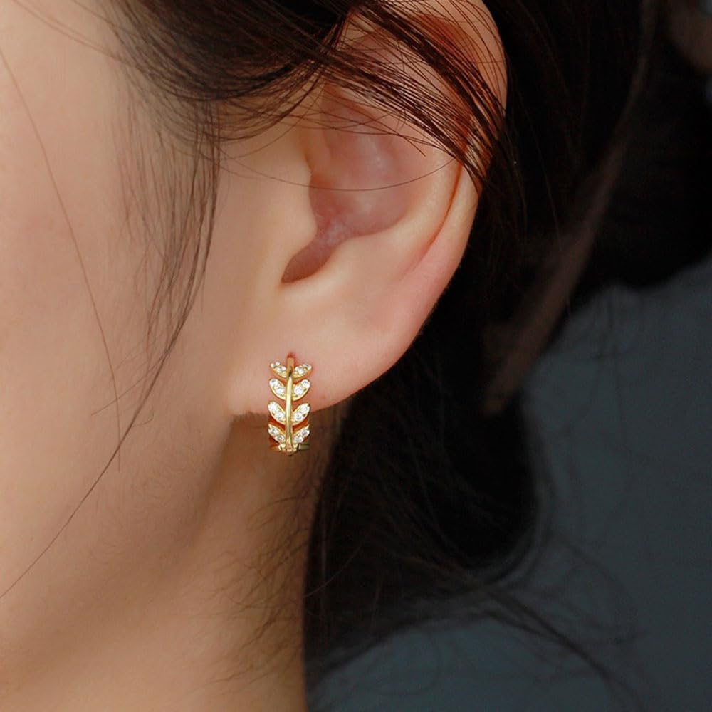 Rockyuのオリーブリーフデザイン フープピアスは、繊細な葉のモチーフにジルコニアをあしらった上品で華やかなアクセサリー。18金仕上げとシルバー925の高品質素材を使用し、肌に優しく長く愛用できます。小ぶりなサイズながら存在感があり、普段使いはもちろん、結婚式やパーティーなどフォーマルなシーンにもぴったり。ゴールドとシルバーの2カラー展開で、コーディネートや好みに合わせて選べます。誕生日やバレンタインデー、恋人の日などのギフトにも最適です。