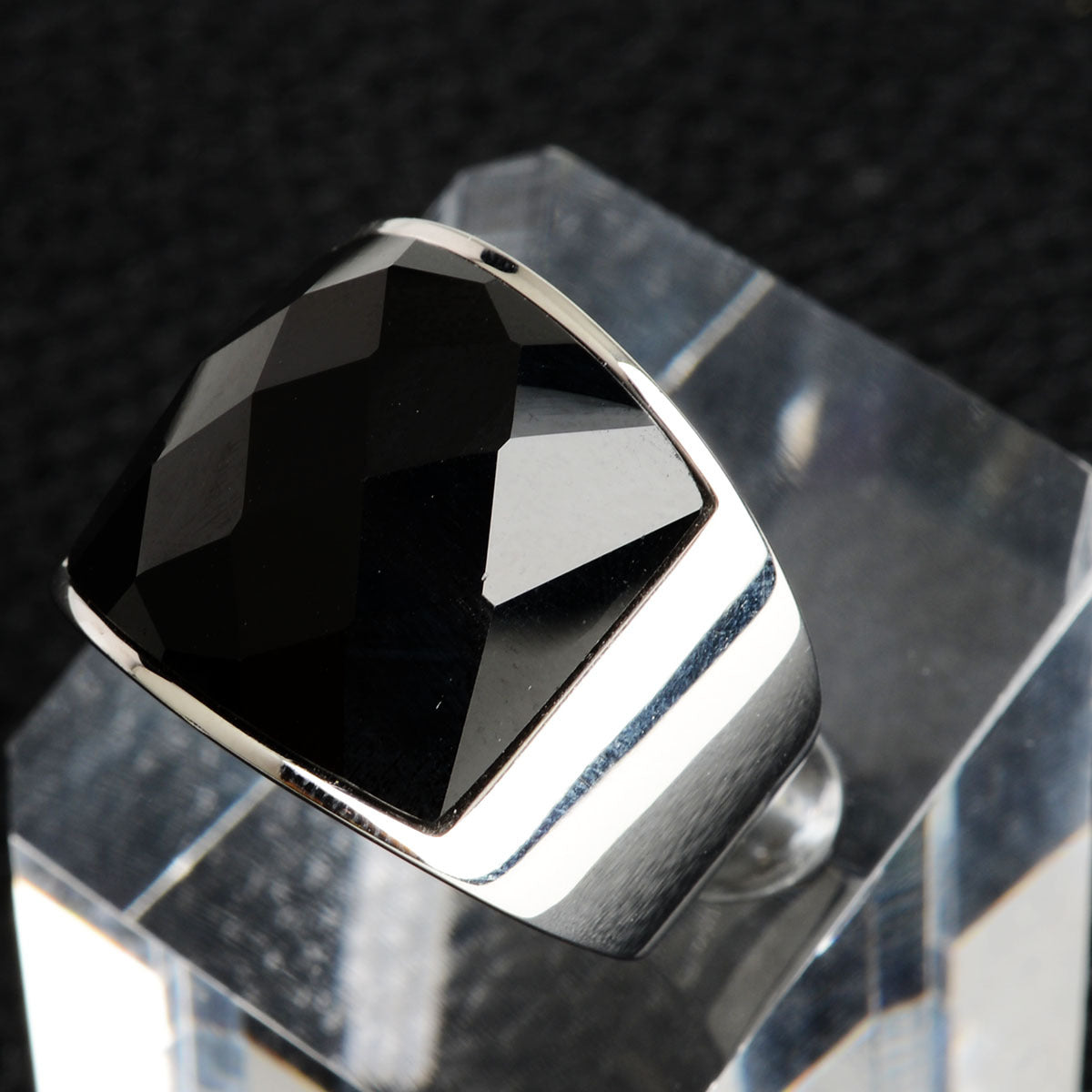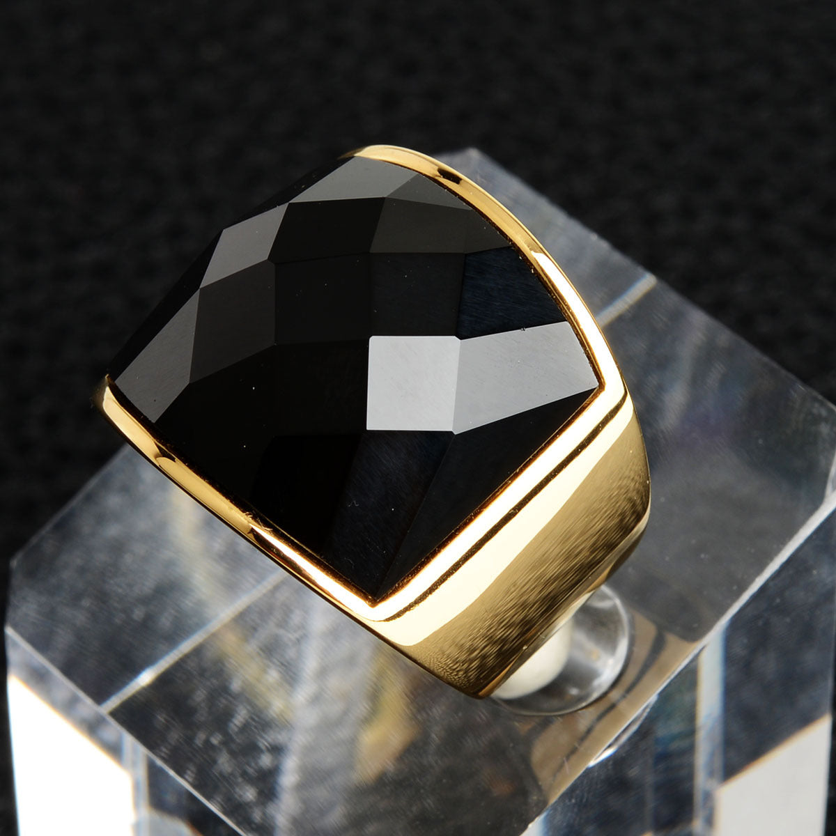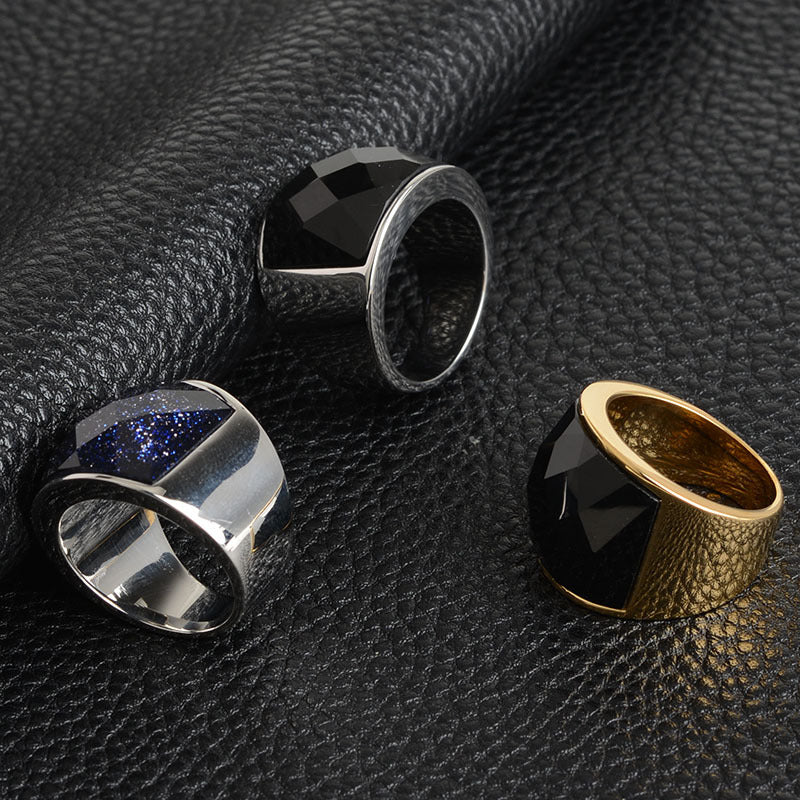 ワイドストーン印台リング|Rockyu ステンレス製 メンズ&ユニセックス ファッションリング 多彩な煌めきで個性を演出