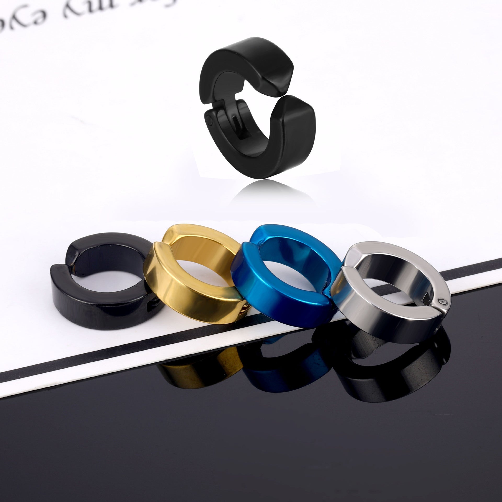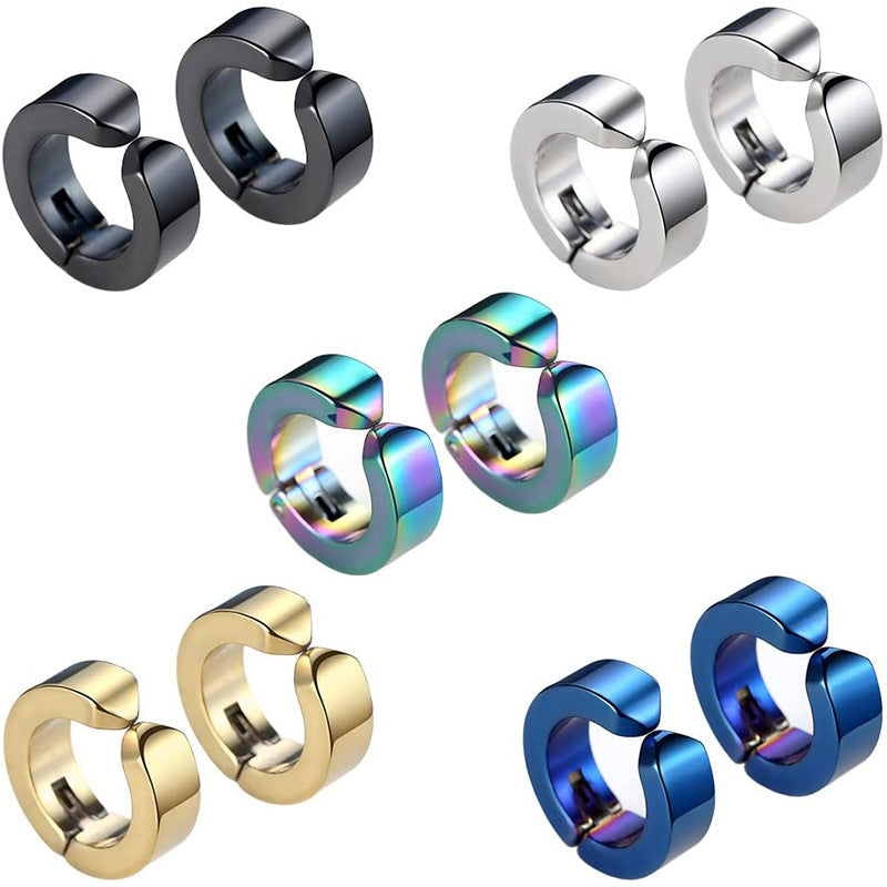 Rockyu フェイクピアス メンズ レディース フープ イヤーカフ ノンホール 黒 青 金 シルバー アレルギー対応