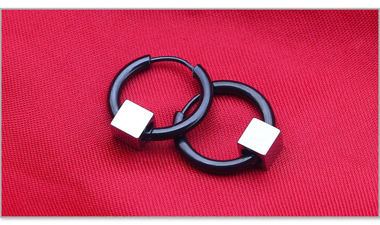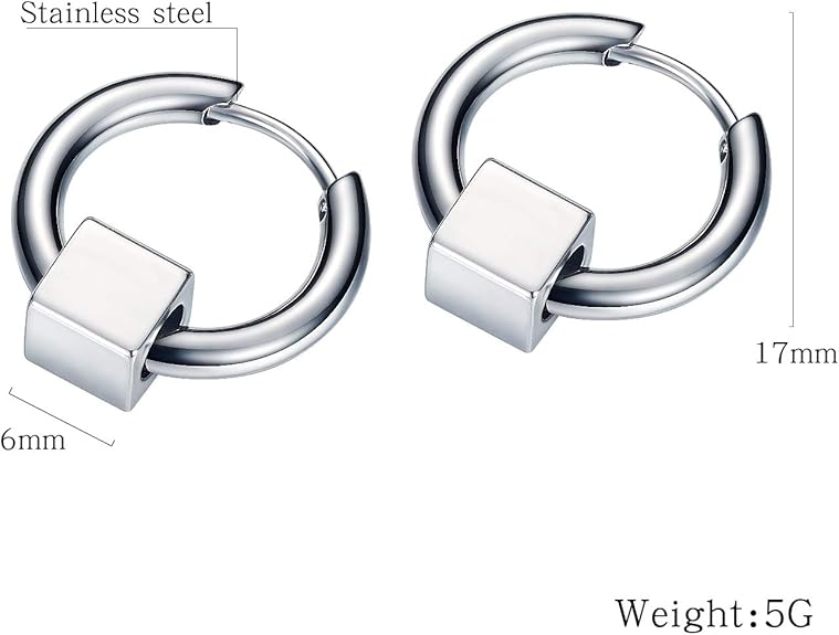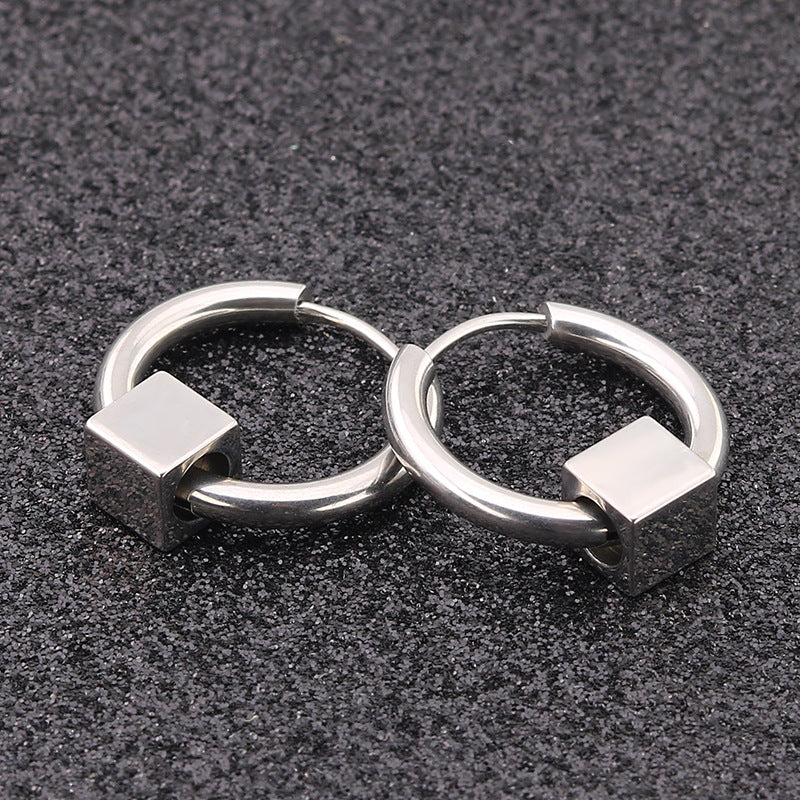 Rockyu フープピアス メンズ レディース兼用 ステンレス キューブデザイン シンプル モード